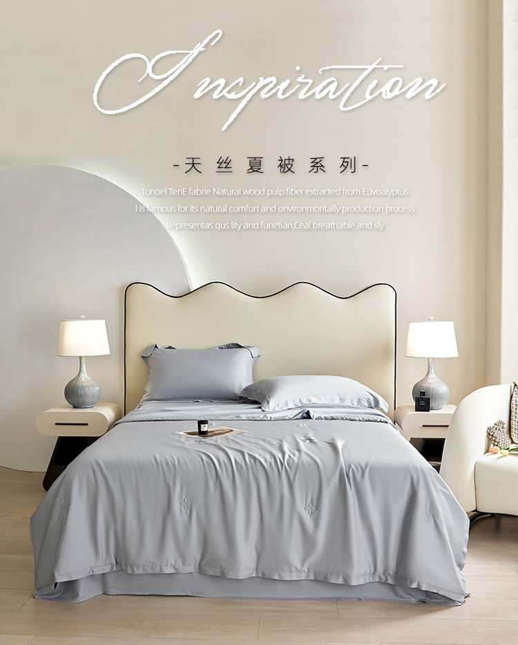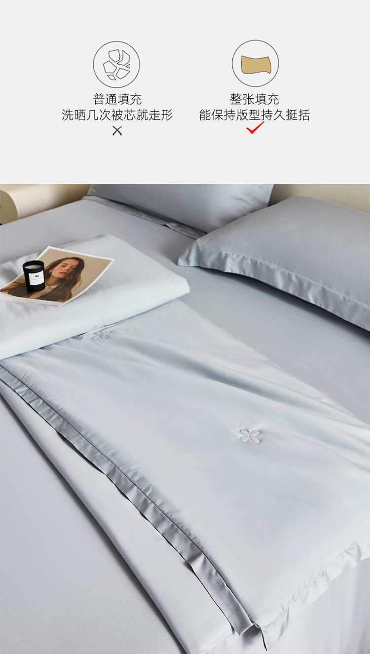 天瑜家纺 2024新款纯色天丝夏被 牛仔灰