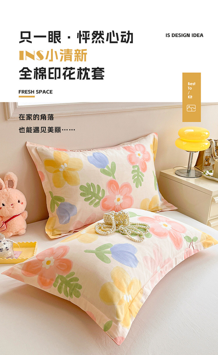 绵庭 2023新款全棉印花枕套 花蜜悠然