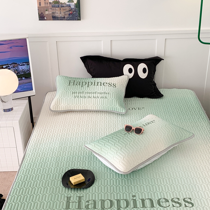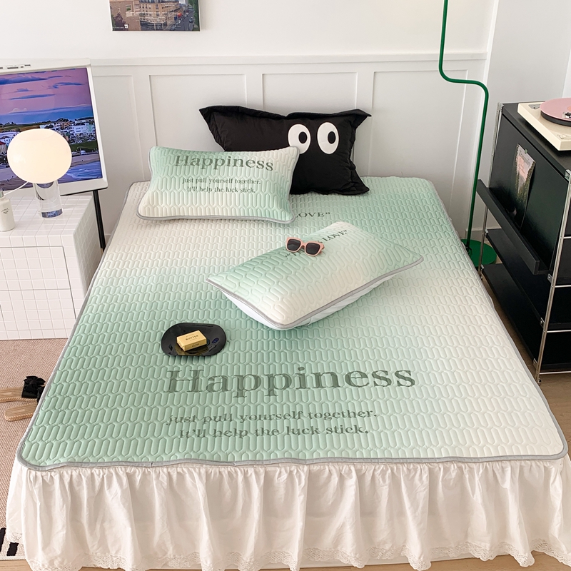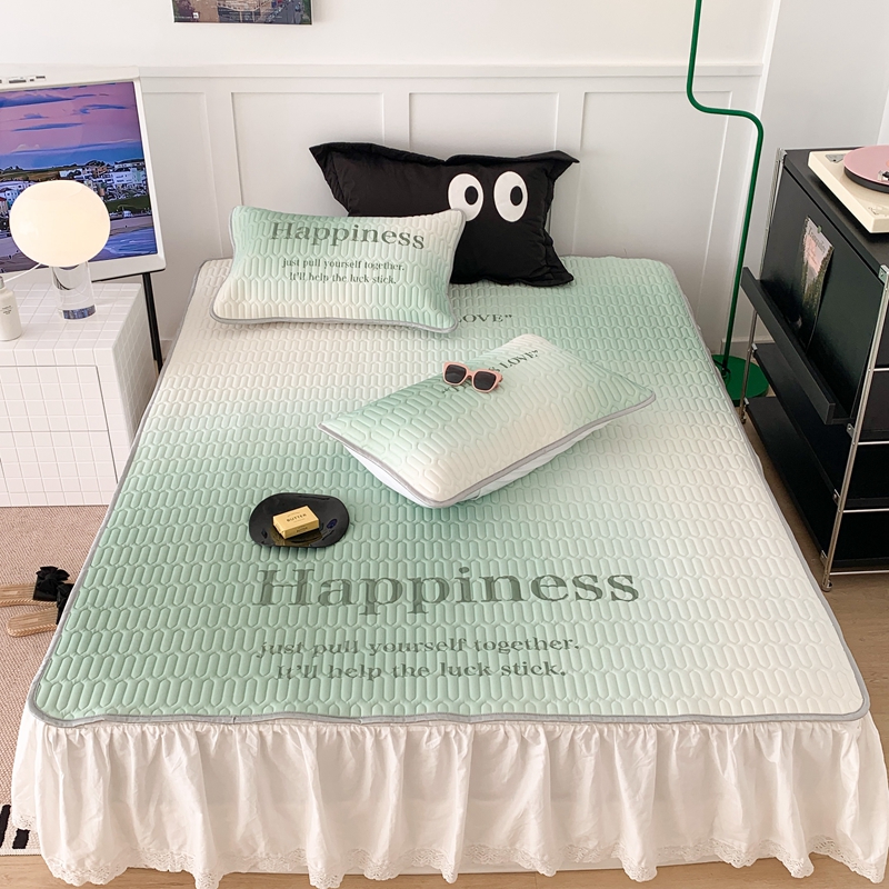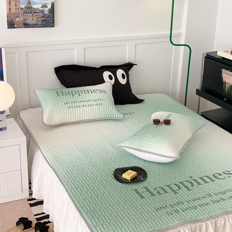 商品名称:昔可2023新款ins简约风乳胶凉席 渐变绿字母
