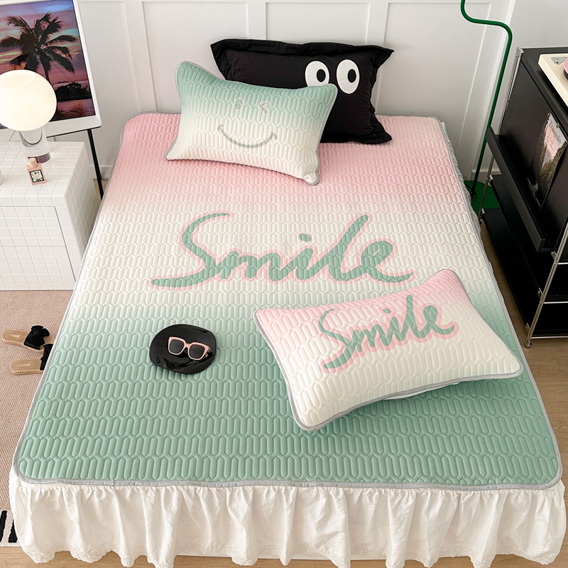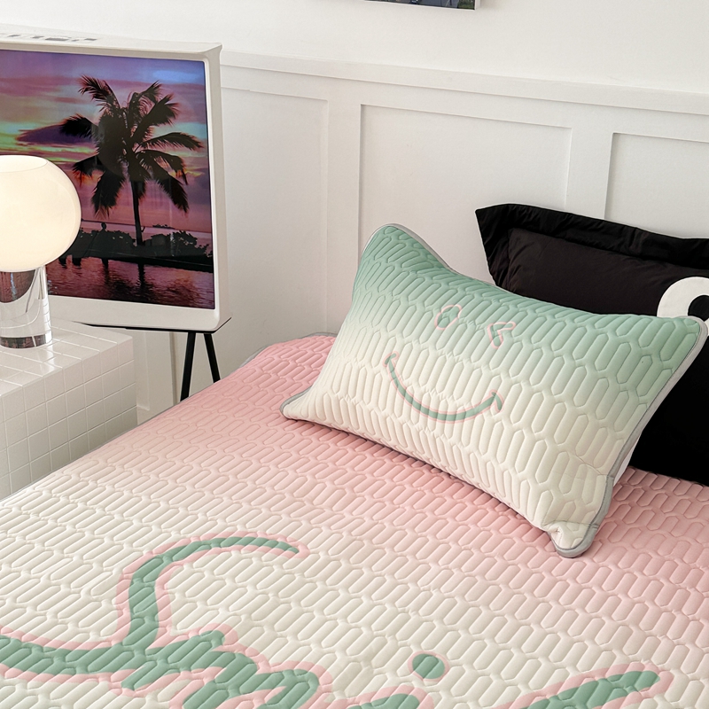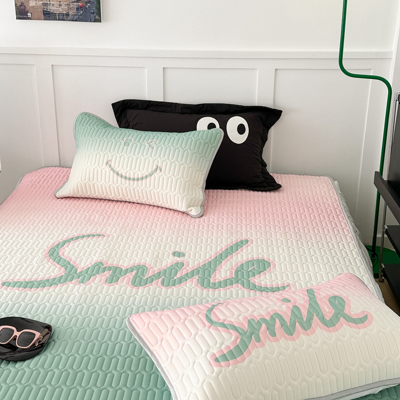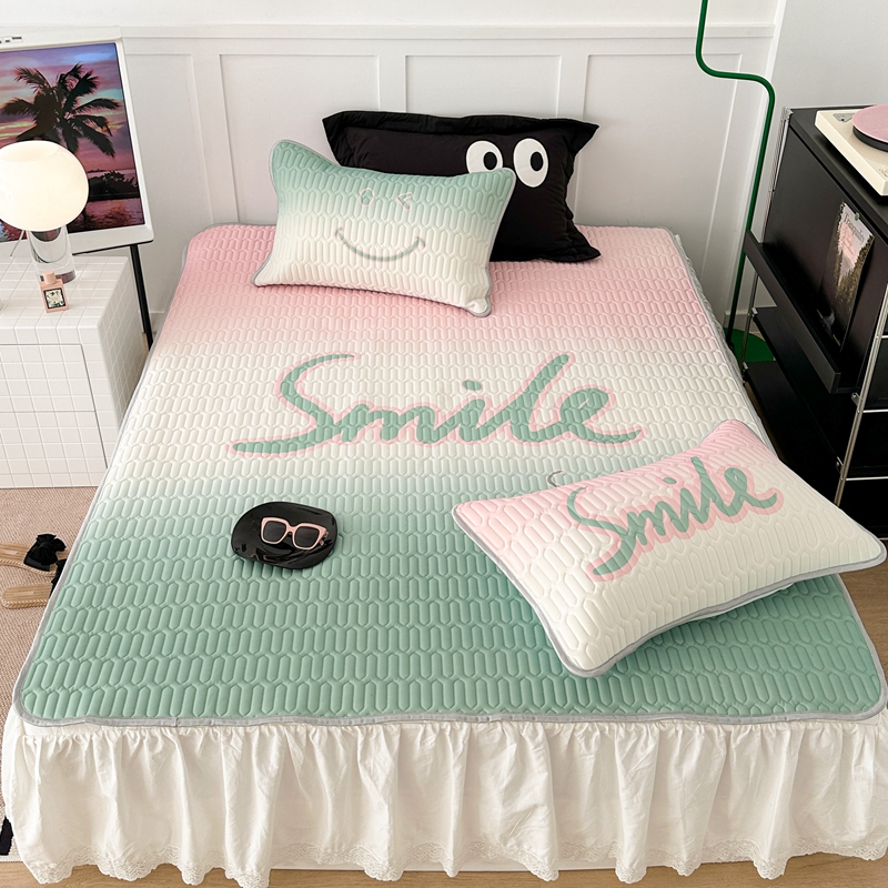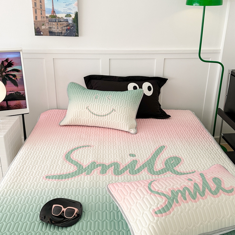 商品名称:昔可2023新款ins简约风乳胶凉席 晕染粉绿笑脸