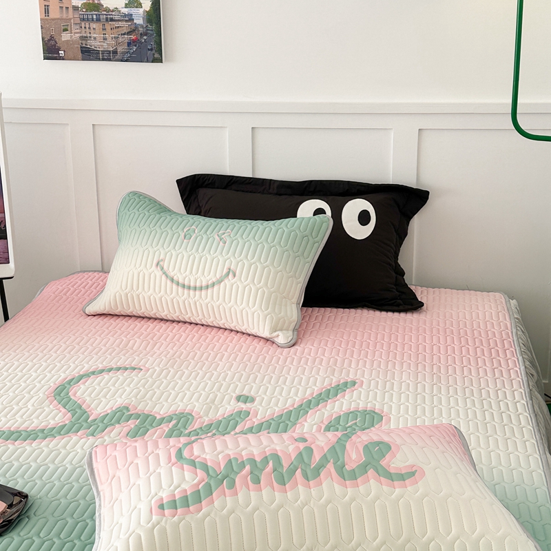 昔可2023新款ins简约风乳胶凉席 晕染粉绿笑脸