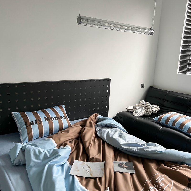 (总)圆岛家纺 2023新款原创牛奶绒印花保暖四件套,中红蓝条,天空蓝,奶油紫,尚黑细条,枣红细条,棋盘格绿,绿茵蓝条,菱星粉,蓝松绿条,黑白菱星