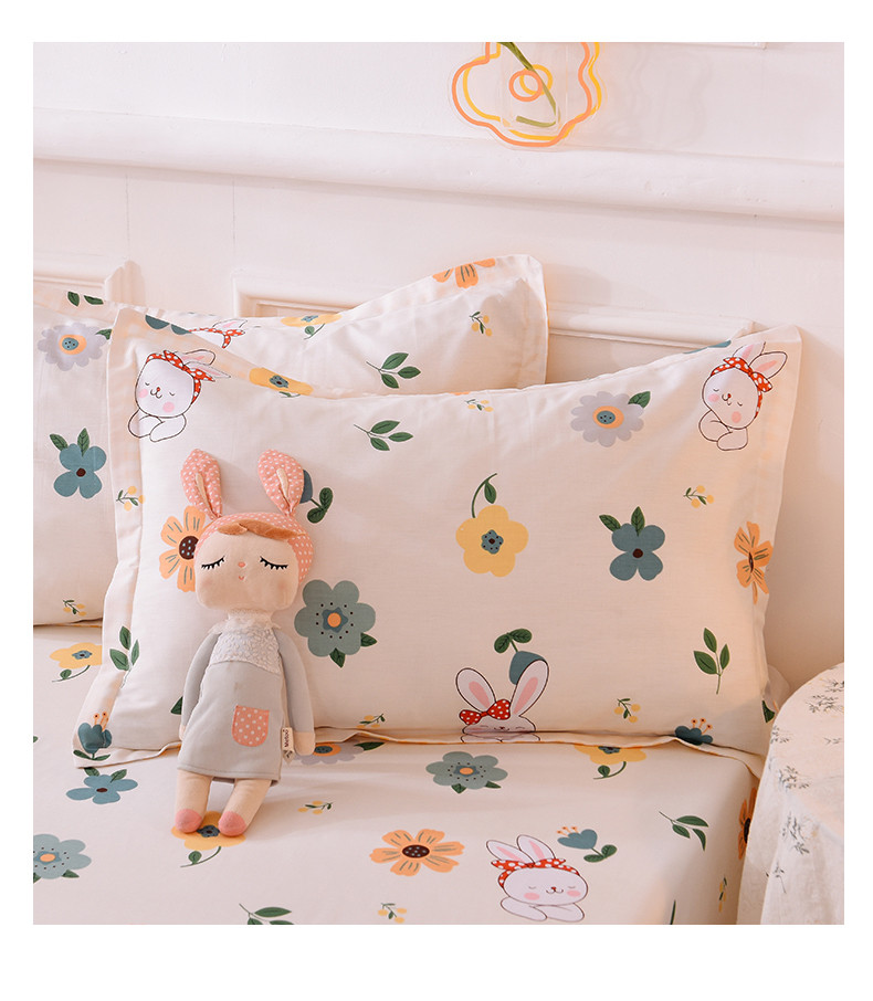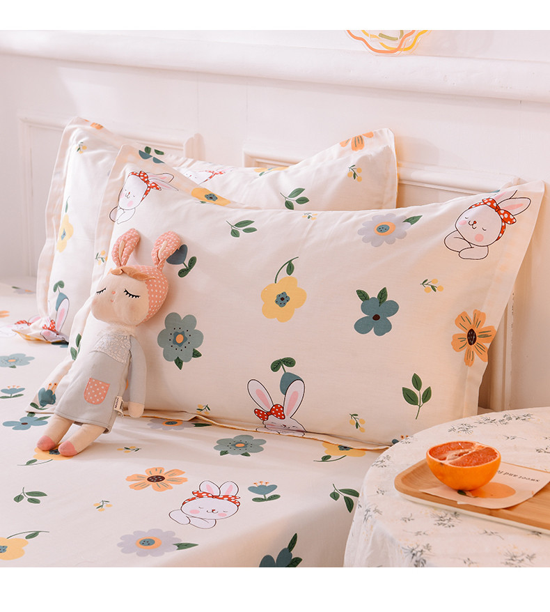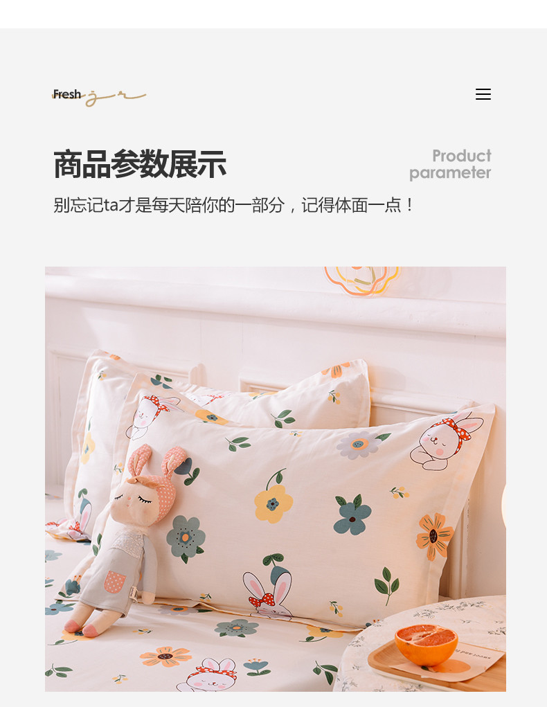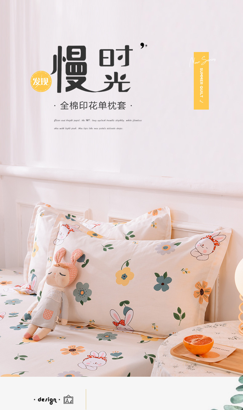 多品家纺 2023新款12868全棉双针单枕套 花园小兔