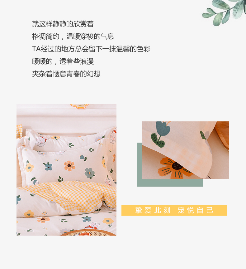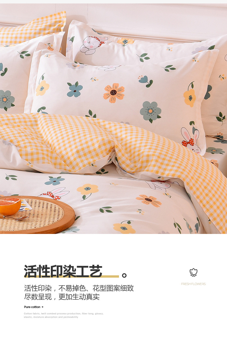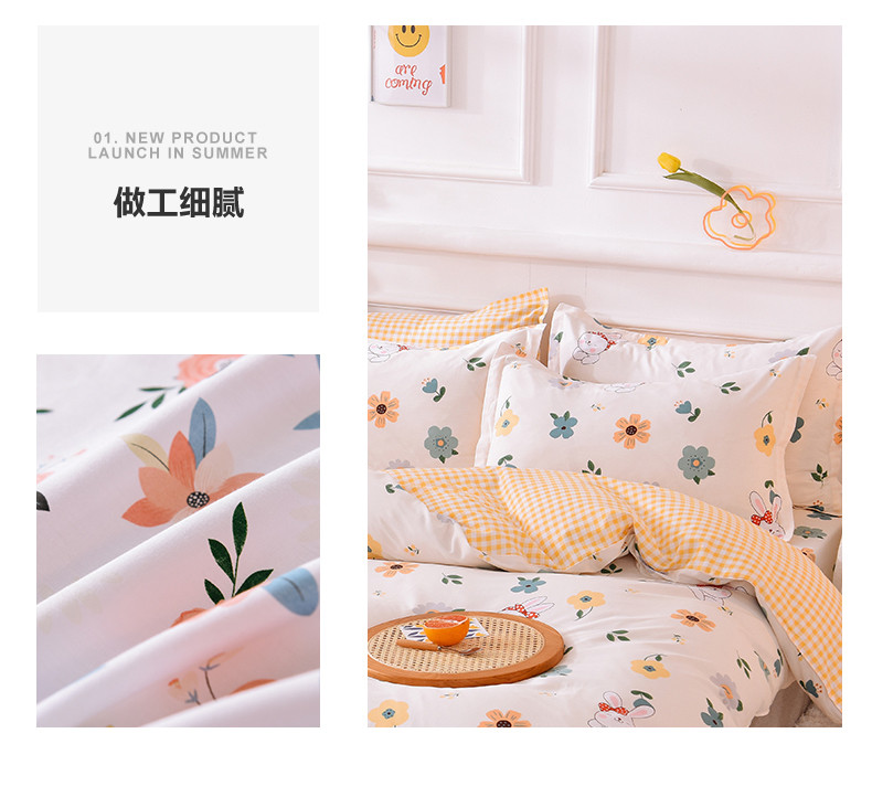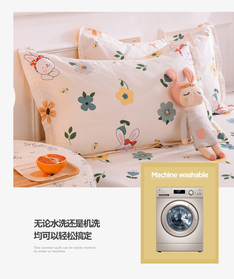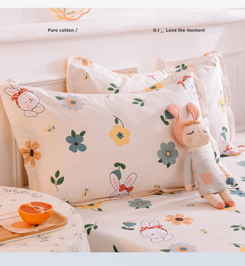 多品家纺 2023新款12868全棉双针单枕套 花园小兔