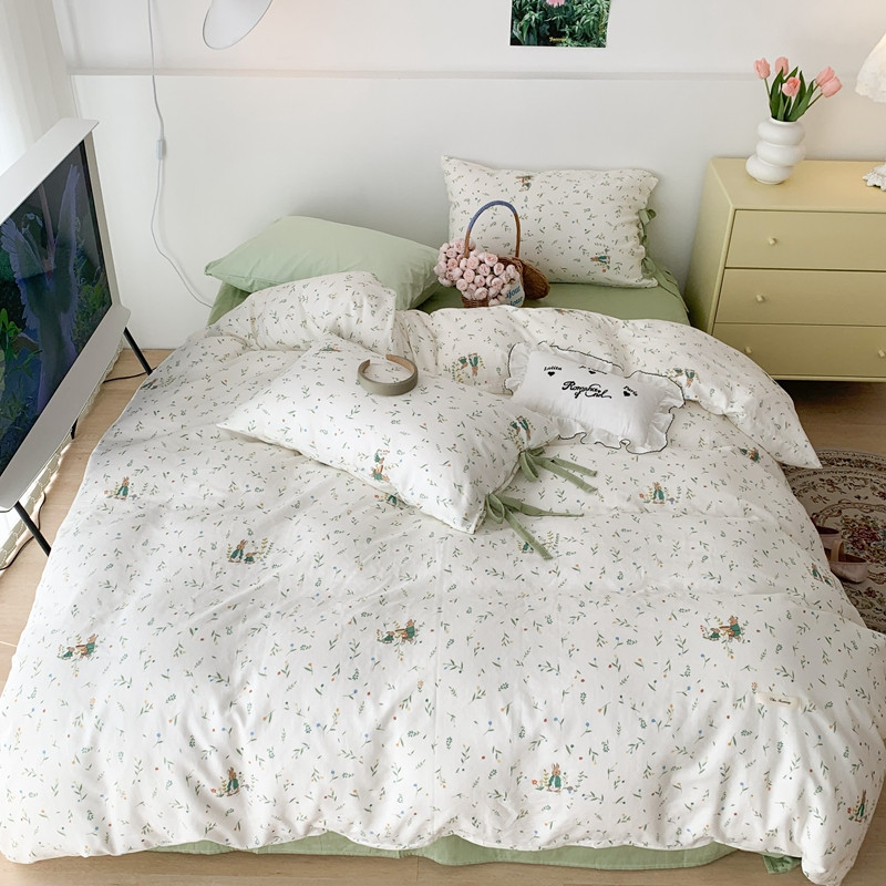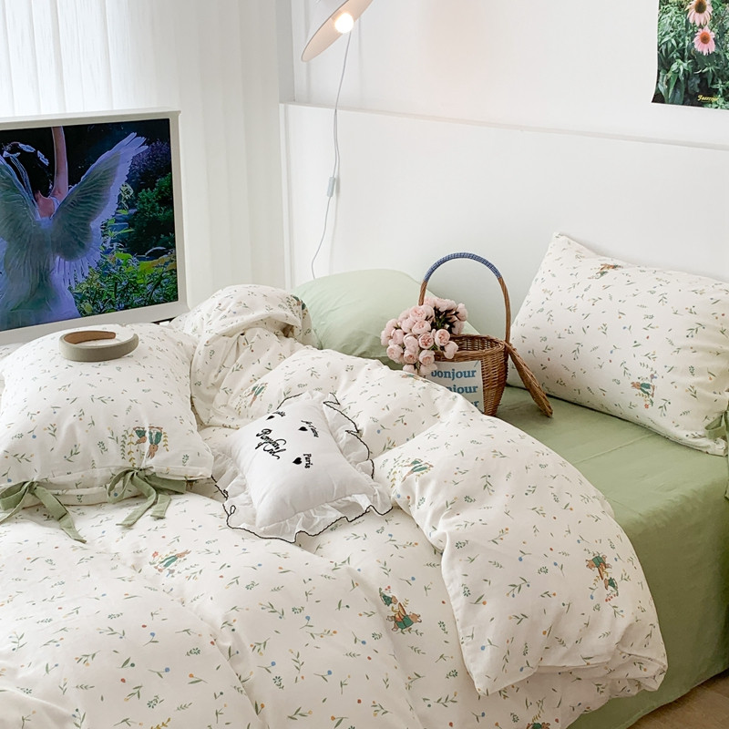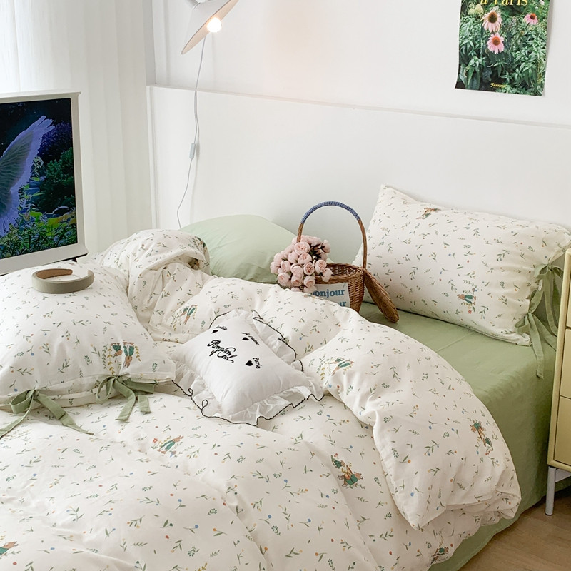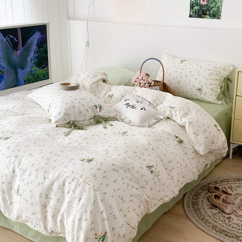 商品名称:昔可家纺 2023新款双层纱枕套带蝴蝶结四件套 小兔的密会