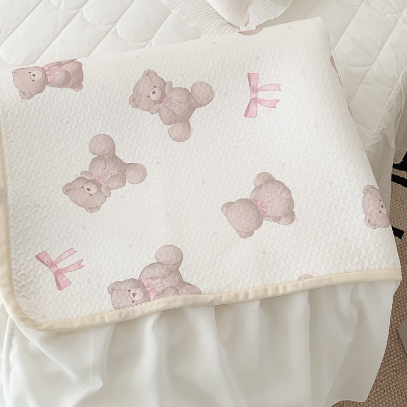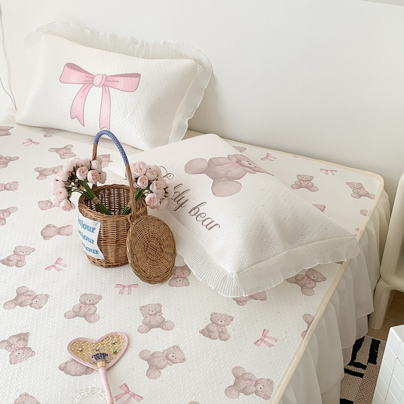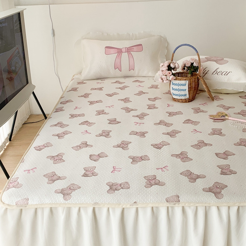 昔可家纺 2023新款双层雪纺纱花边床裙款凉感软席 蝴蝶结小熊