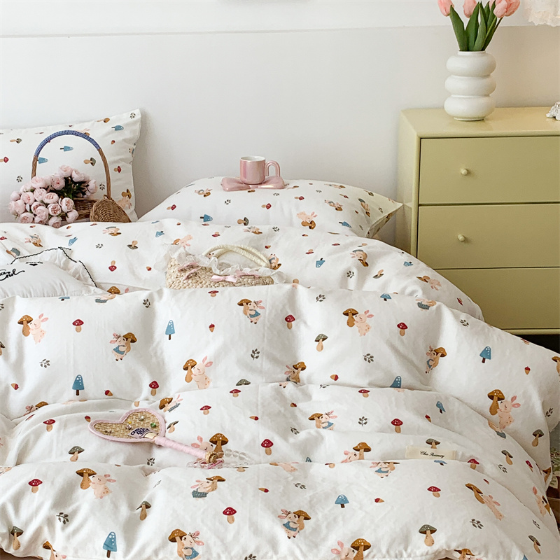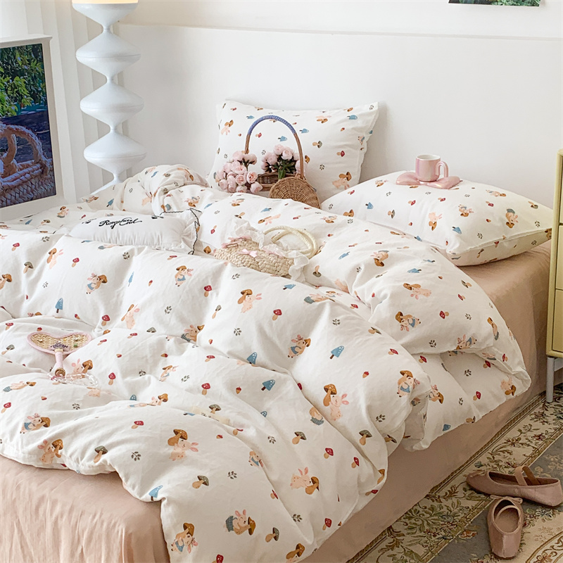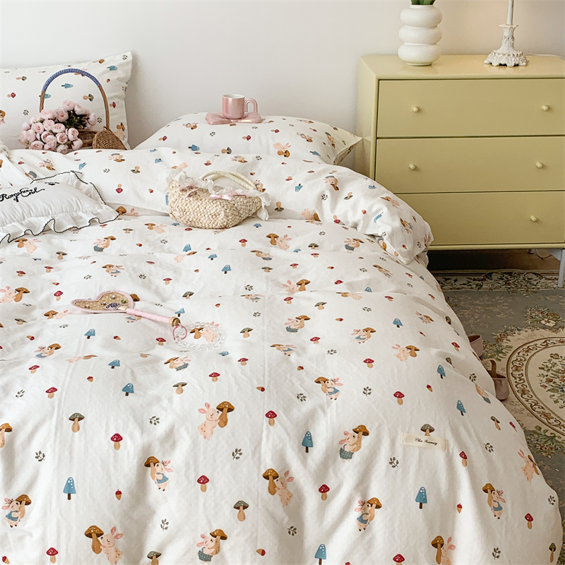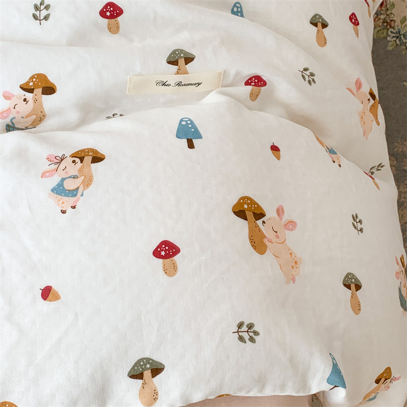 昔可家纺 2023新款普通款全棉有氧双层纱四件套 采蘑菇的小白兔
