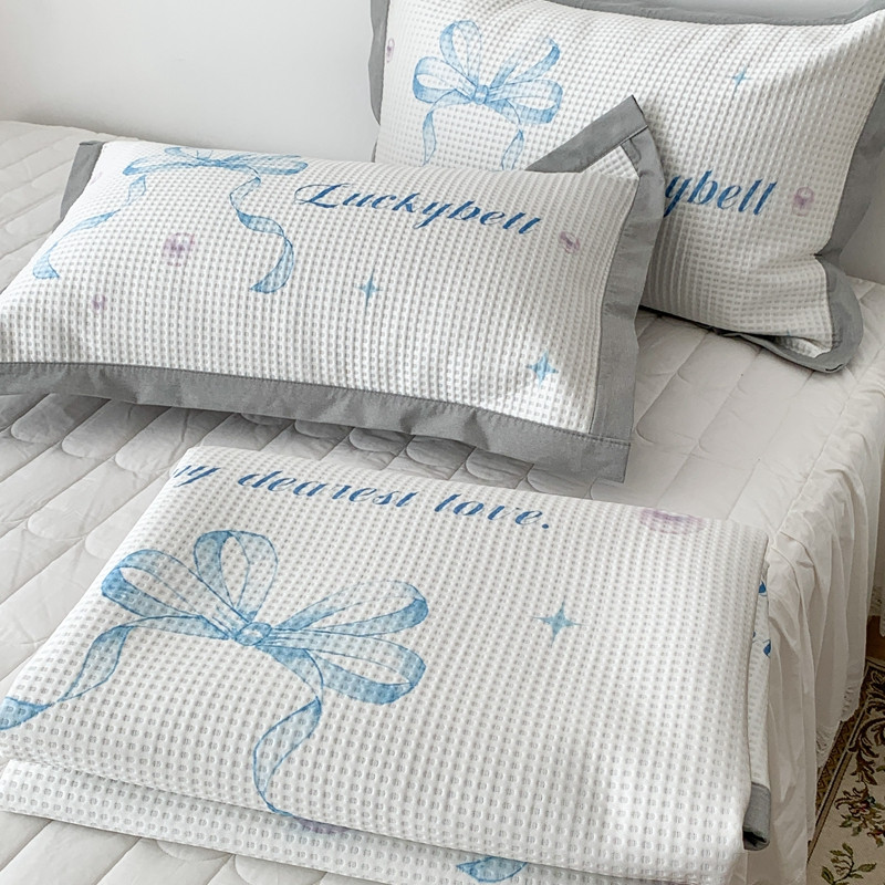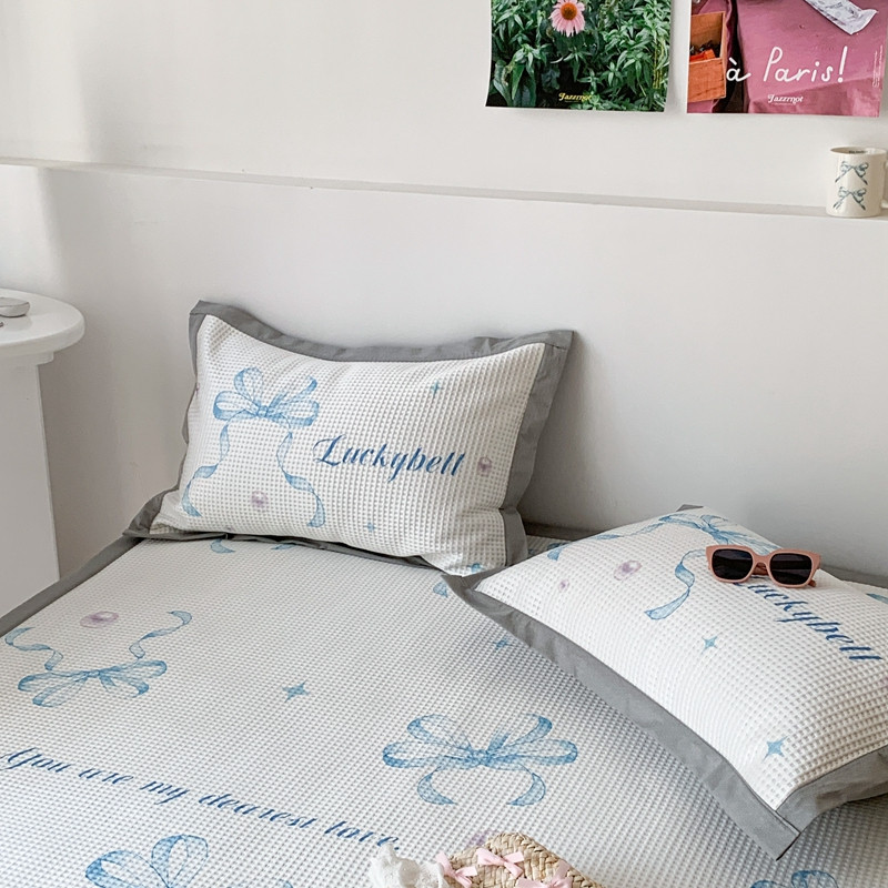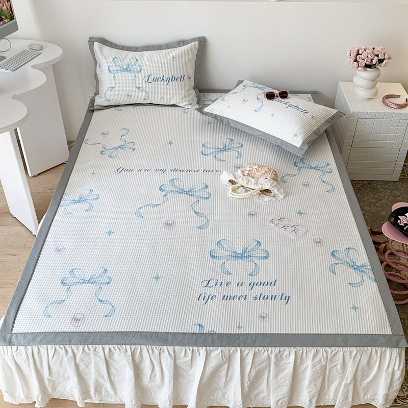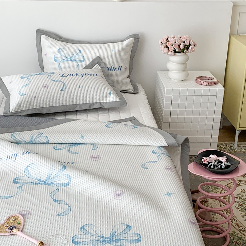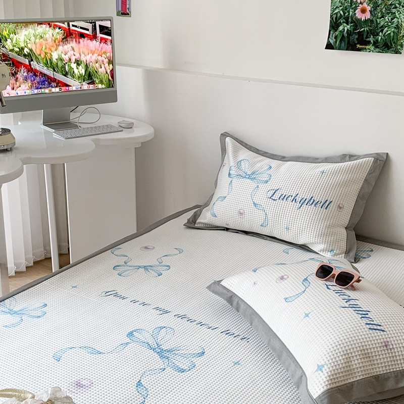 昔可家纺 2023新款高克重加厚华夫格凉感软席 蓝色丝带珍珠