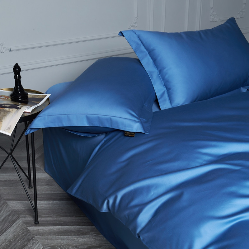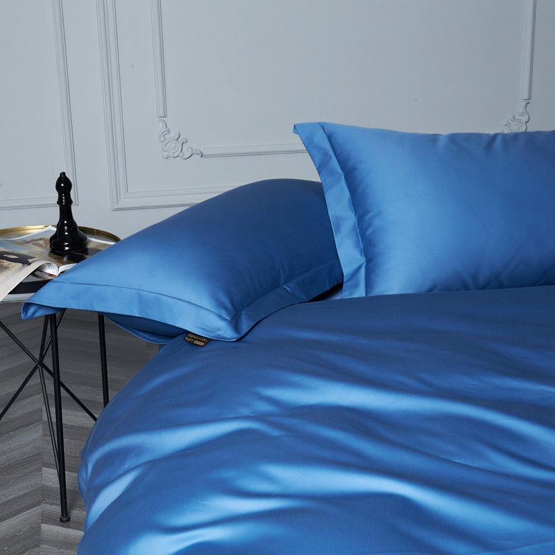 商品名称:莱阁亿 2023新款高支高密纯色新疆长绒棉四件套单品被套 巴黎蓝