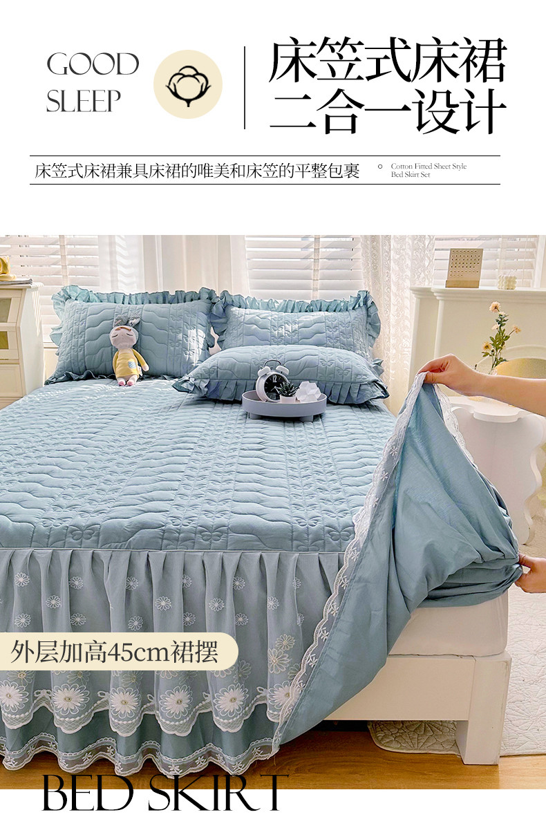 当前位置: 91家纺网 > 商品网购 > 床品套件 > 三件套 > 宜凡 2023新款 全棉床笠式床裙三件套 时光蓝
