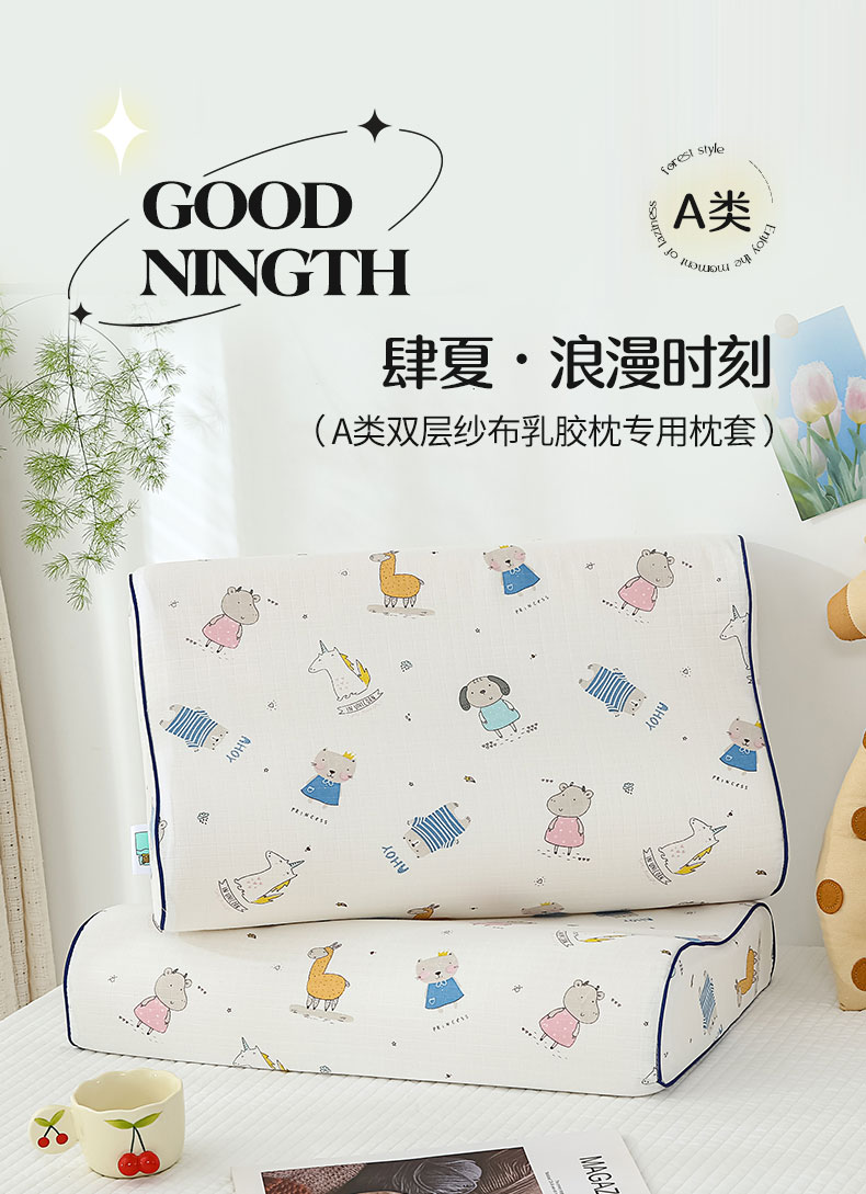 商品名称:(总)良佐生活 2023新款A类母婴级双层纱乳胶枕枕套全棉纱布儿童乳胶枕套