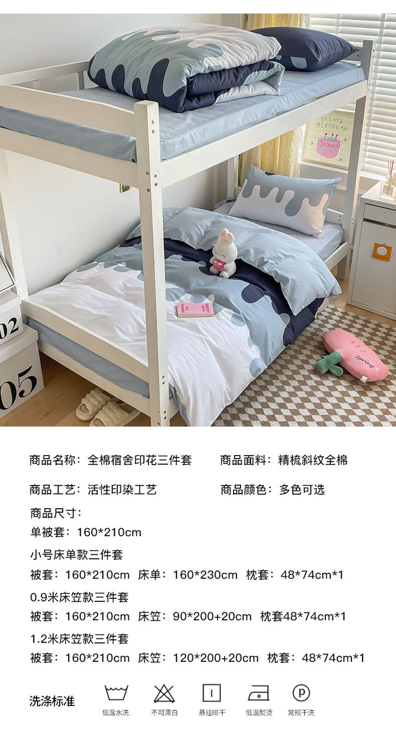 商品名称:金鑫汇 2023新款全棉宿舍印花三件套 奶油蓝