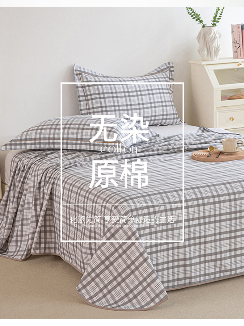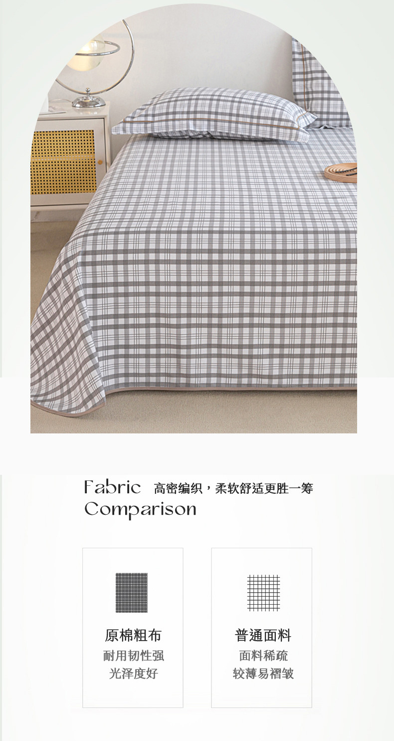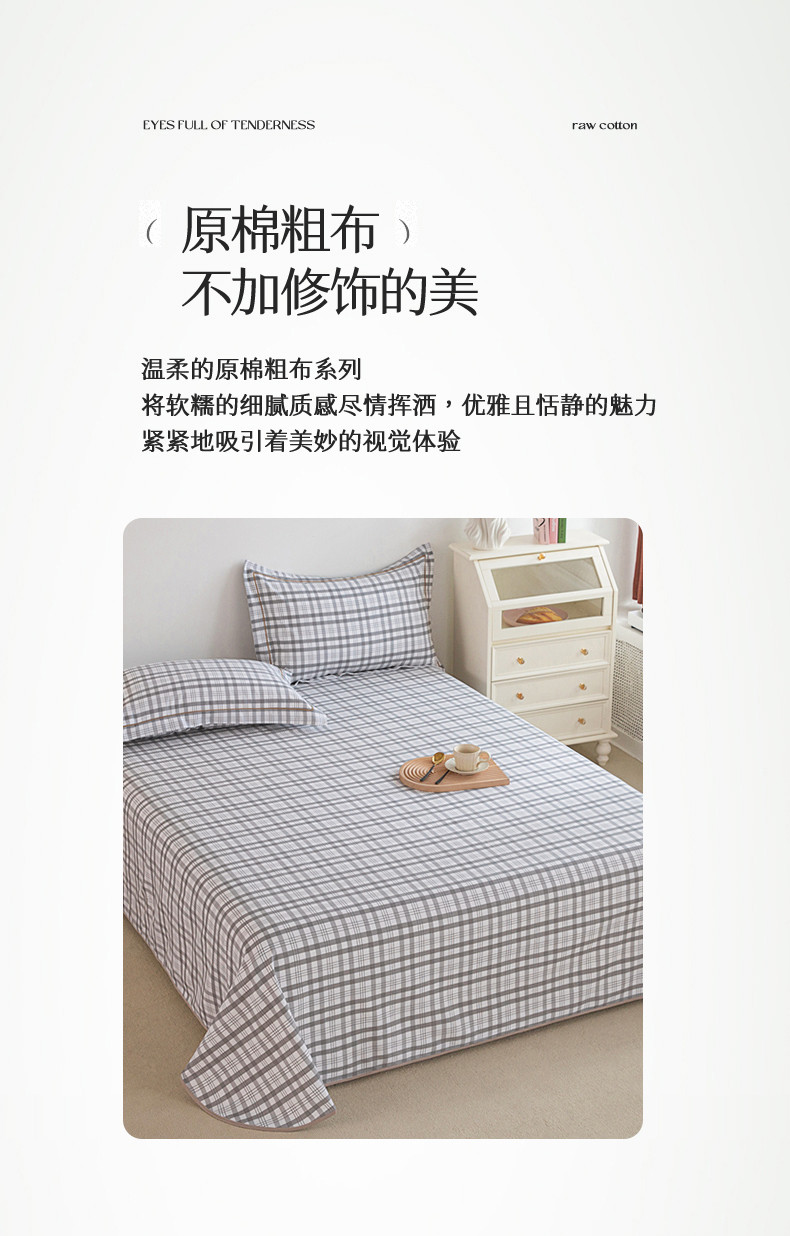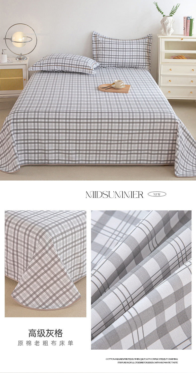 商品名称:首爱 2025新款原棉老粗布床单款三件套 高级灰格