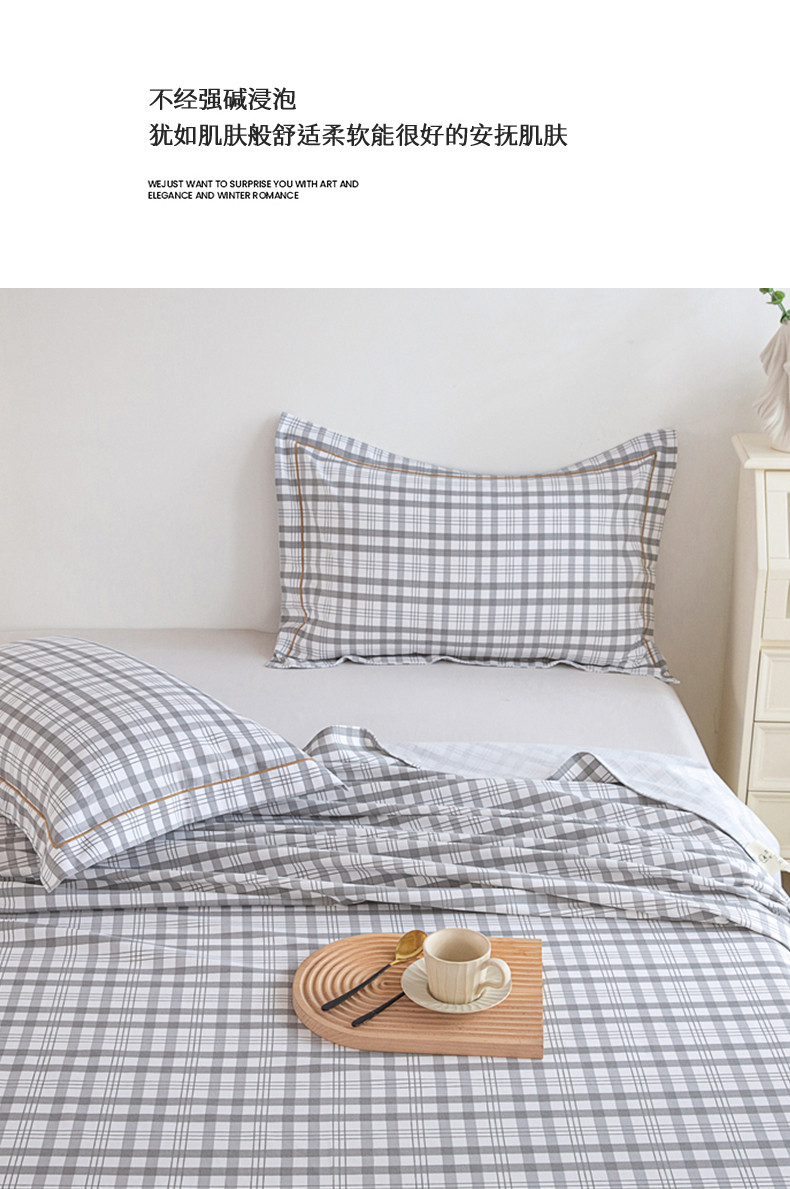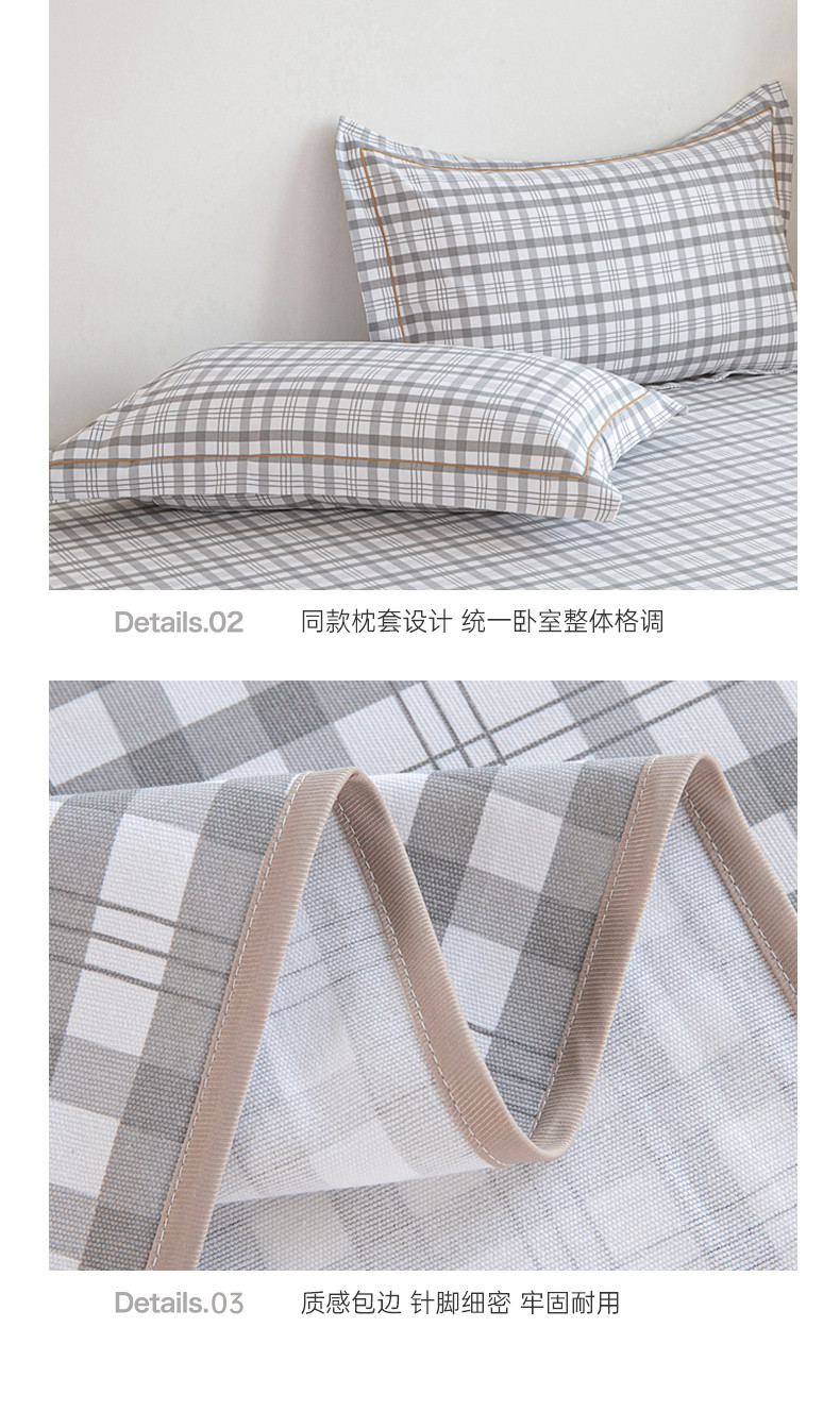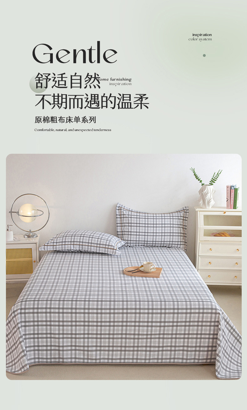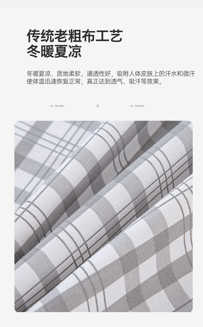 商品名称:首爱 2025新款原棉老粗布床单款三件套 高级灰格
