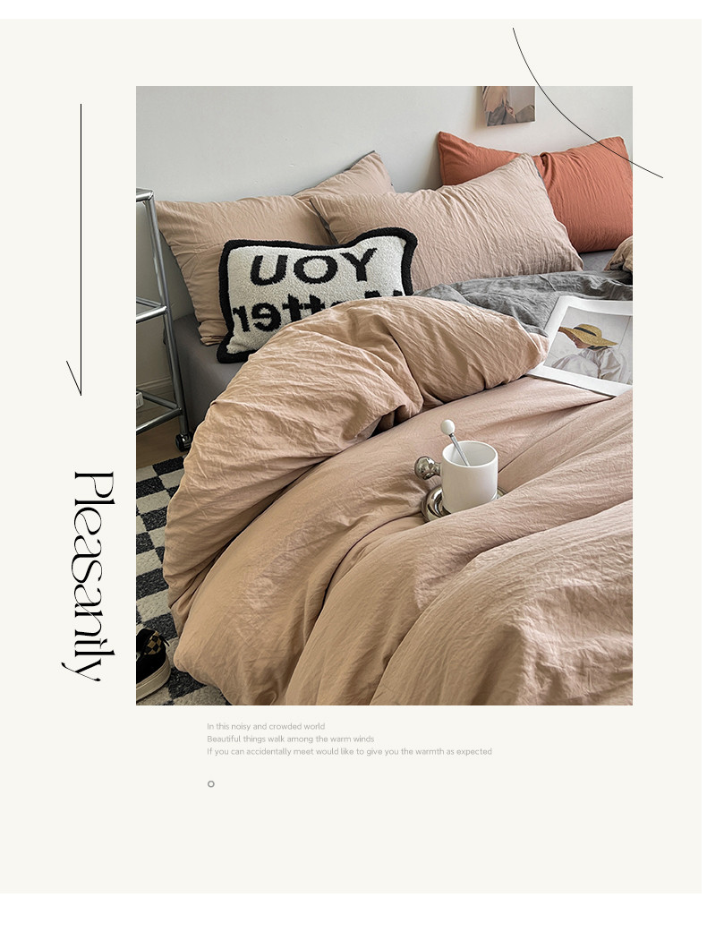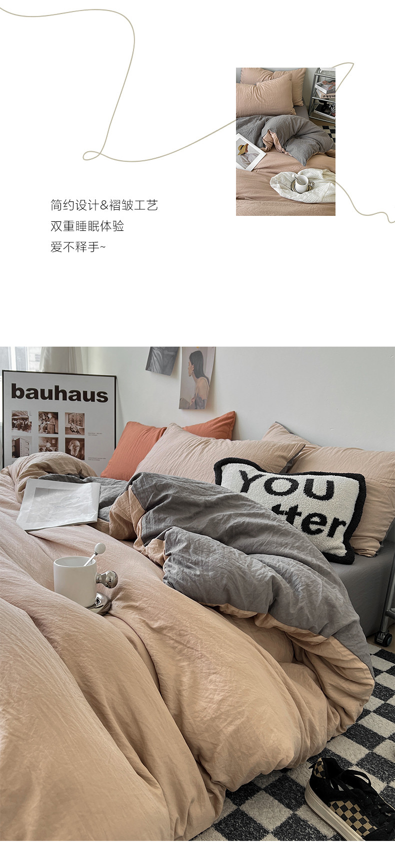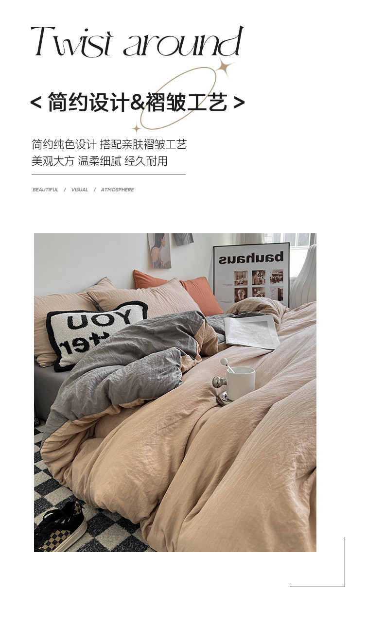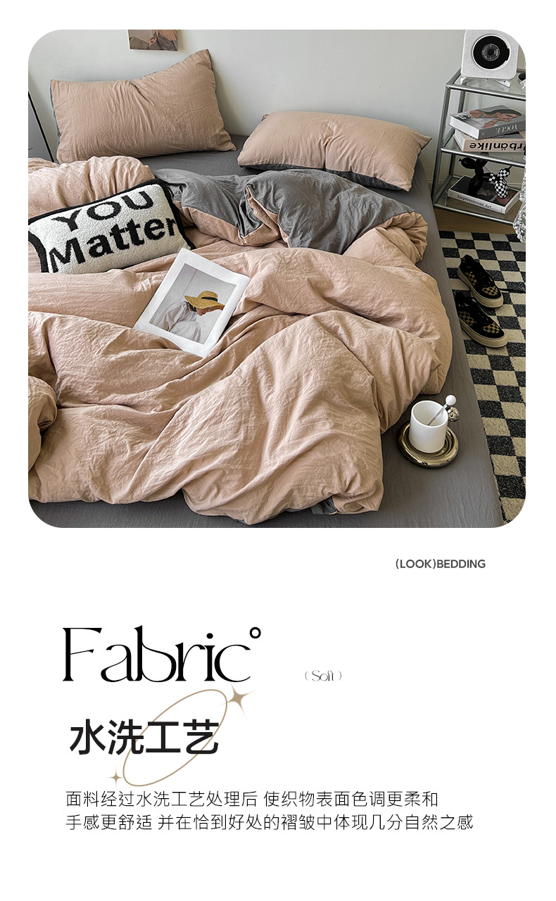 商品名称:水墨江南 2023新款超柔水洗棉简约纯色四件套 中驼浅灰