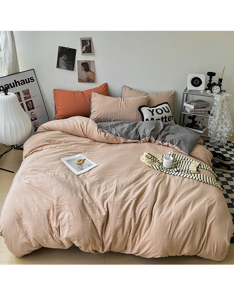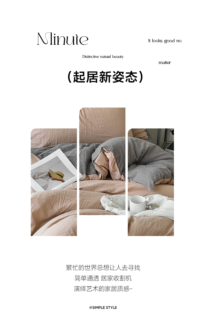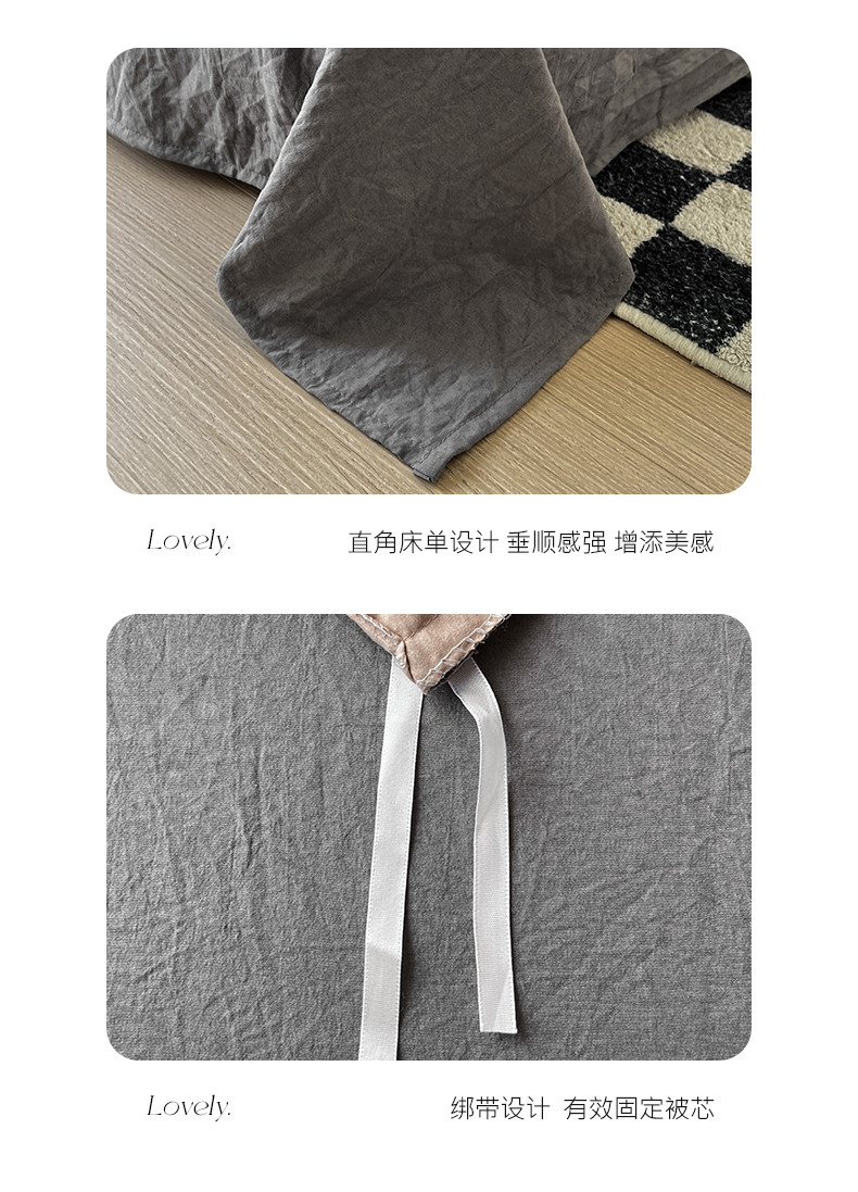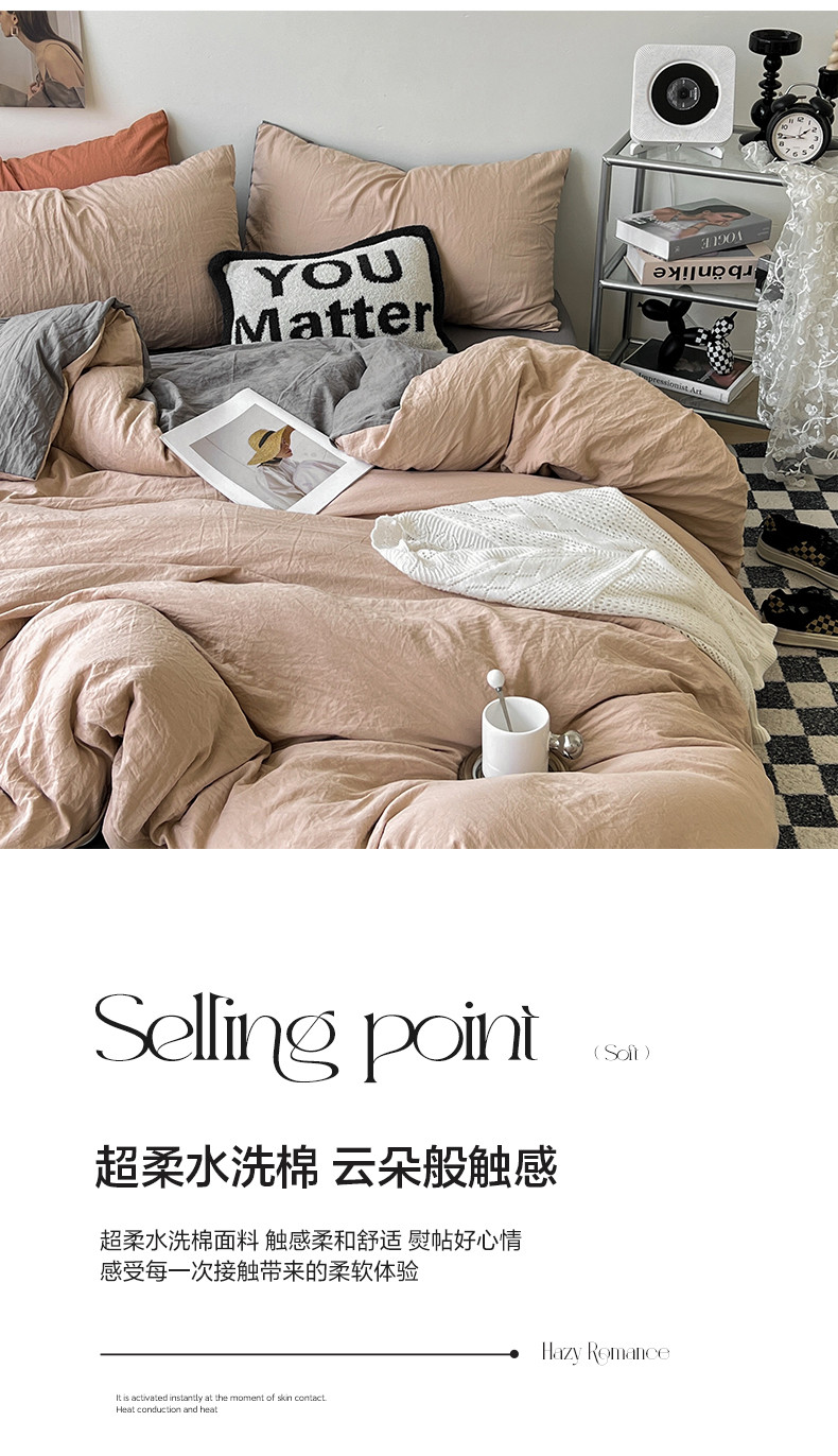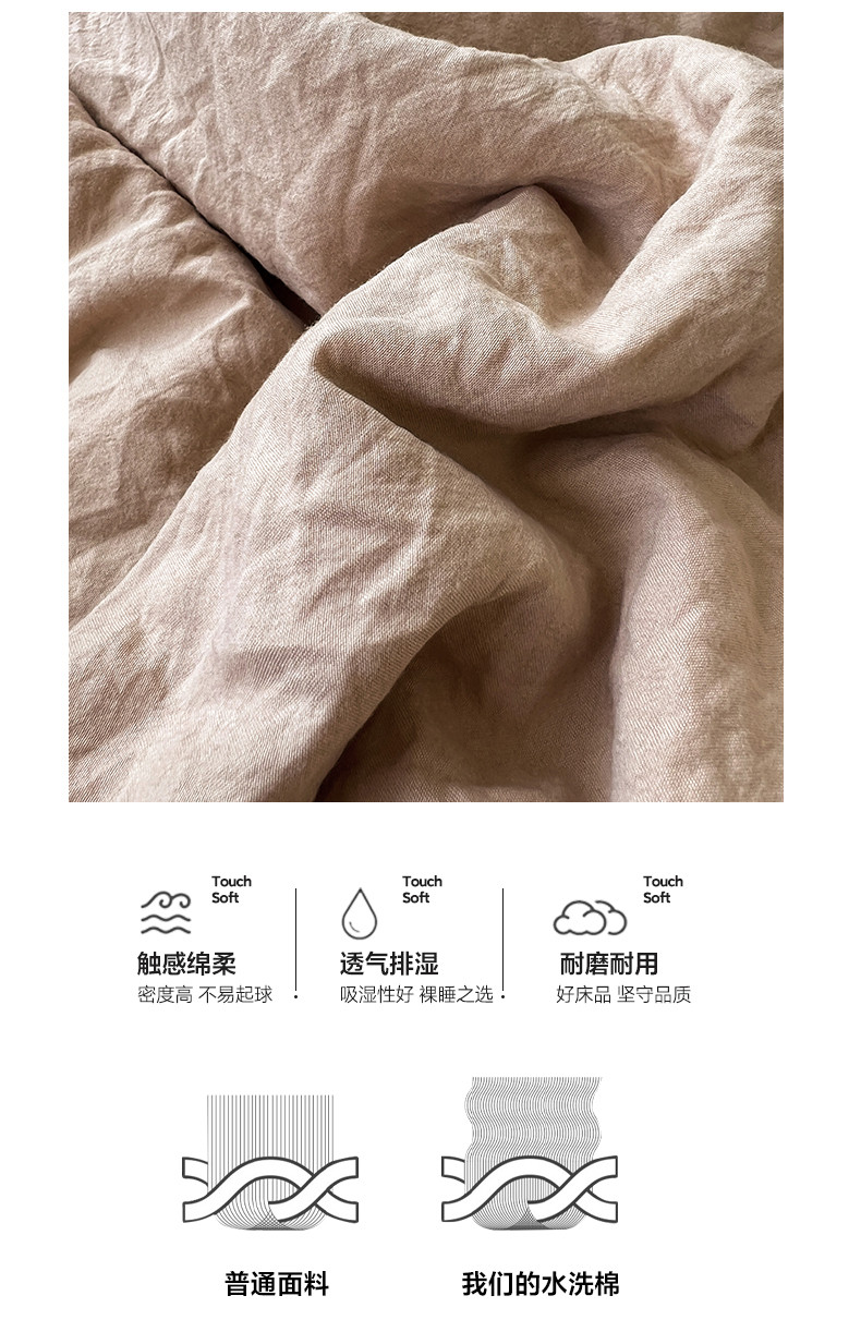商品名称:水墨江南 2023新款超柔水洗棉简约纯色四件套 中驼浅灰