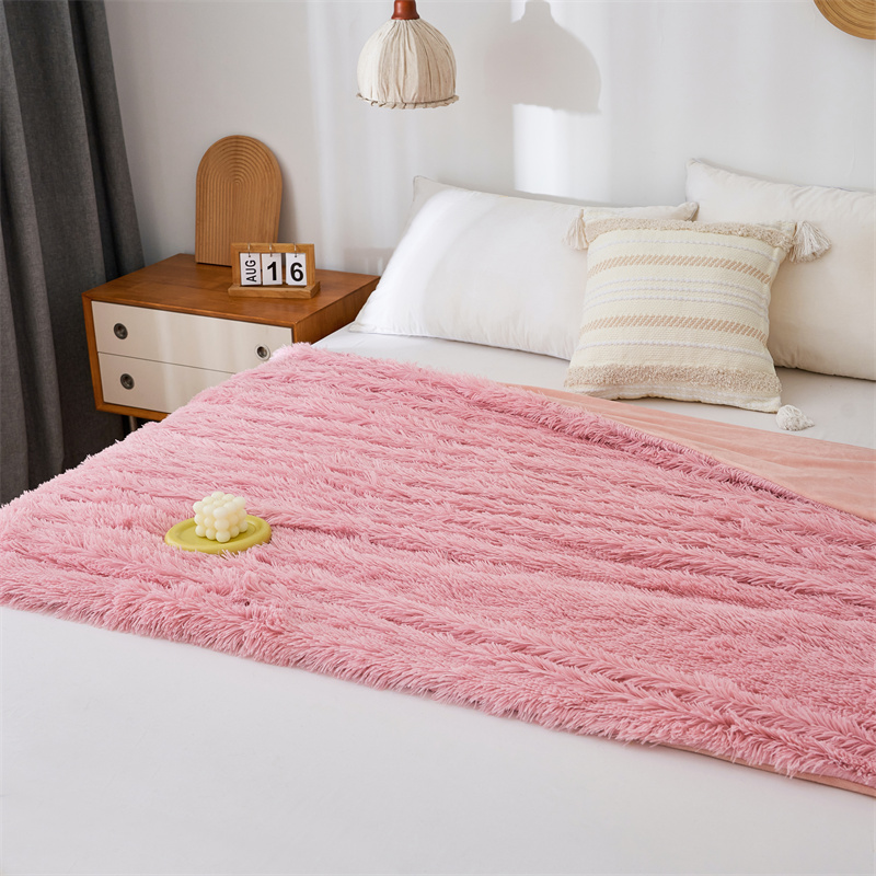 品尚嘉2025水貂绒毛毯长毛绒法莱绒双层跨境外贸毯子 豆沙粉