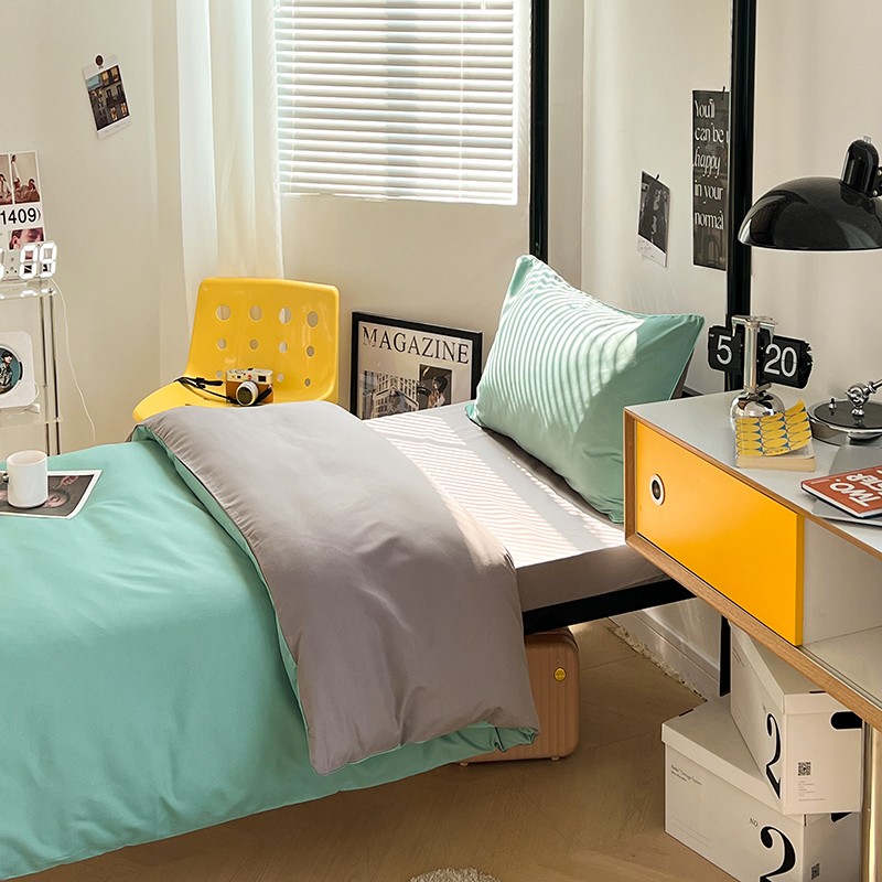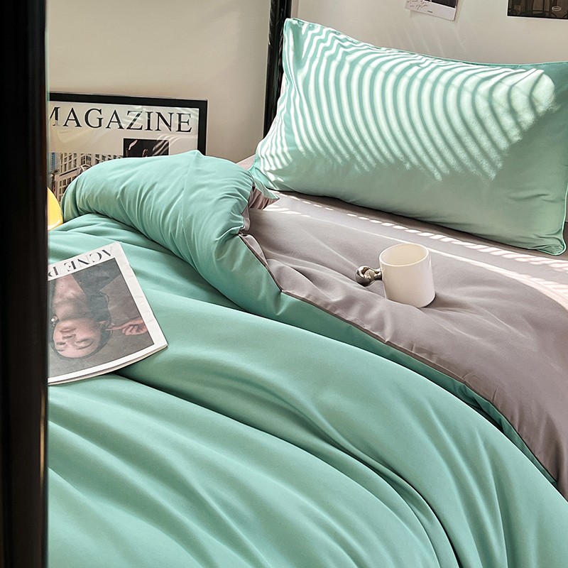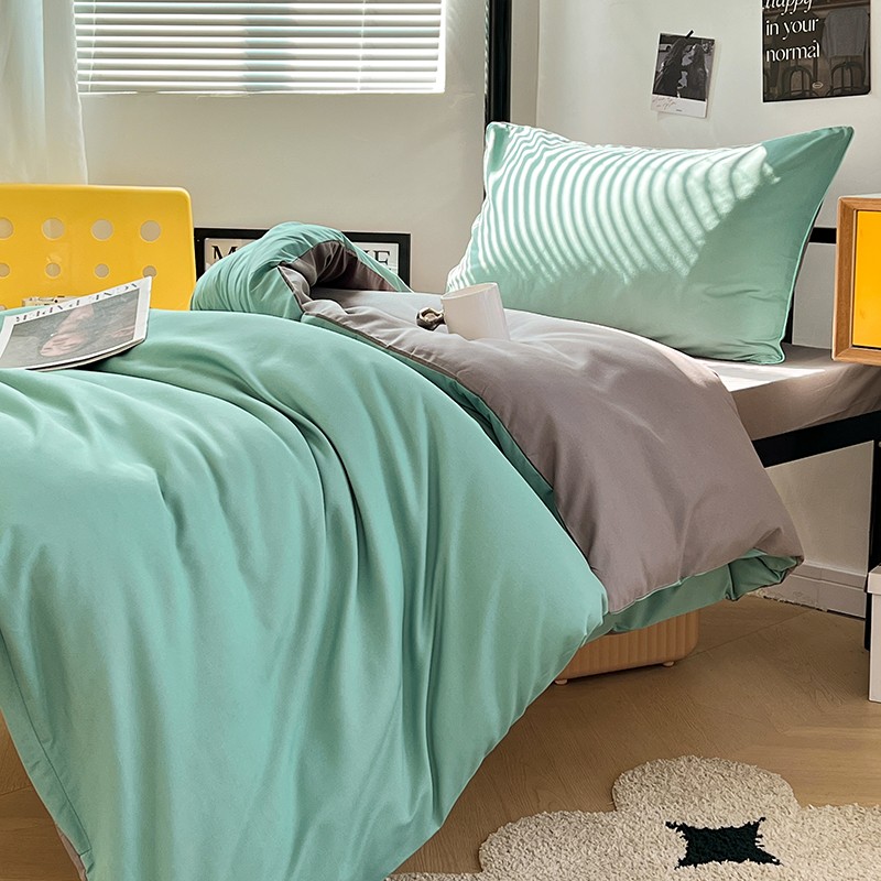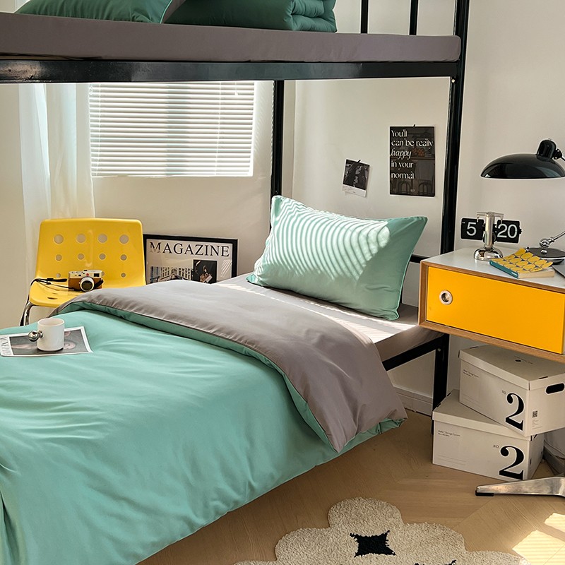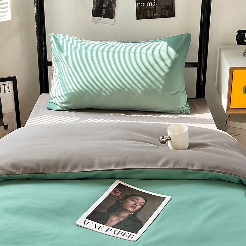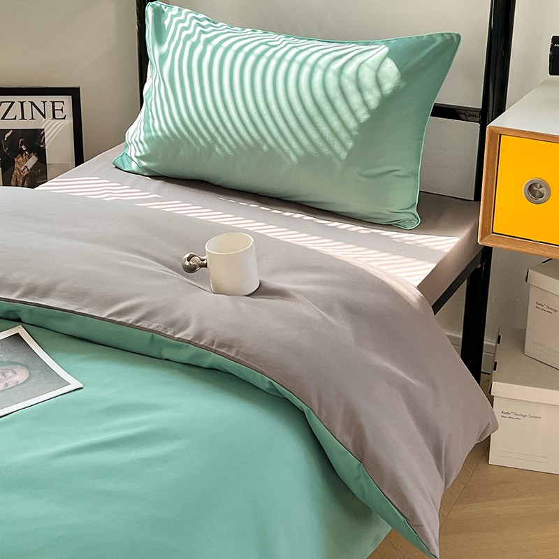 当前位置: 91家纺网 > 商品网购 > 床品套件 > 四件套 > 化纤普通四件套 > 蓝淋家纺 2023新款水洗棉学生宿舍亲肤三件套四件套 豆绿灰
