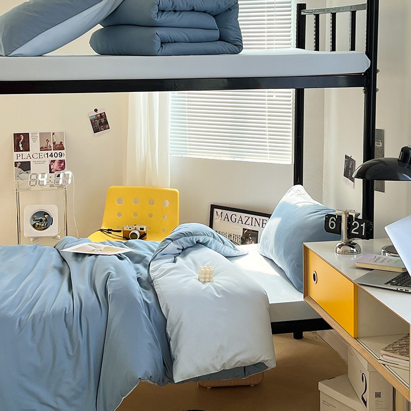 当前位置: 91家纺网 > 商品网购 > 床品套件 > 四件套 > 化纤普通四件套 > 蓝淋家纺 2023新款水洗棉学生宿舍亲肤三件套四件套 月光雾蓝