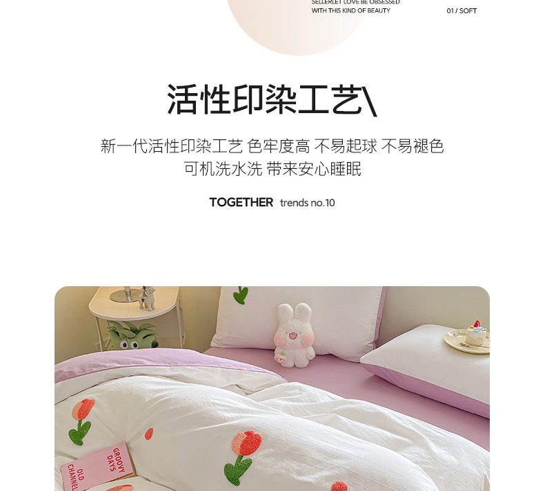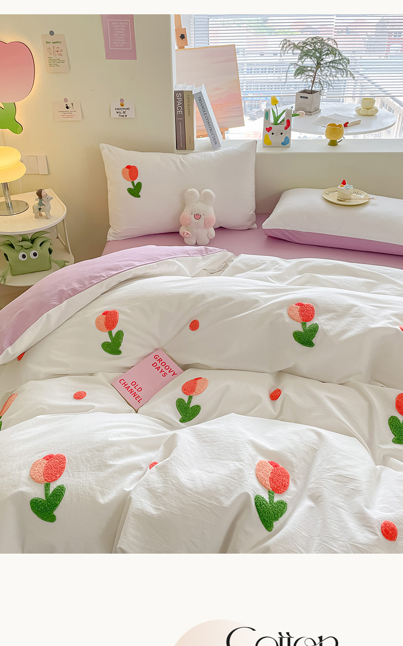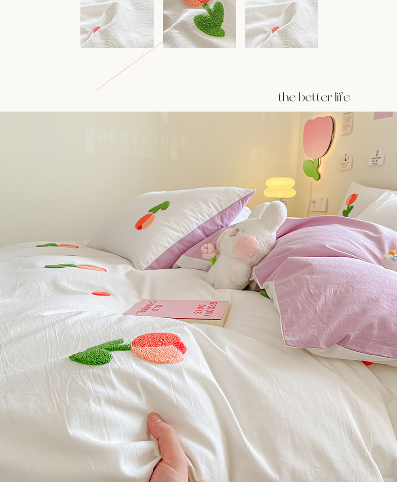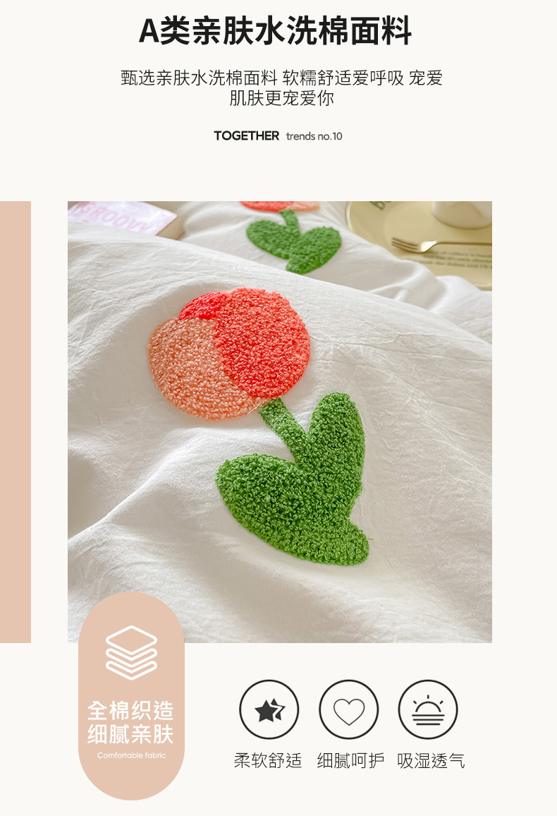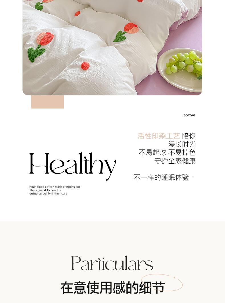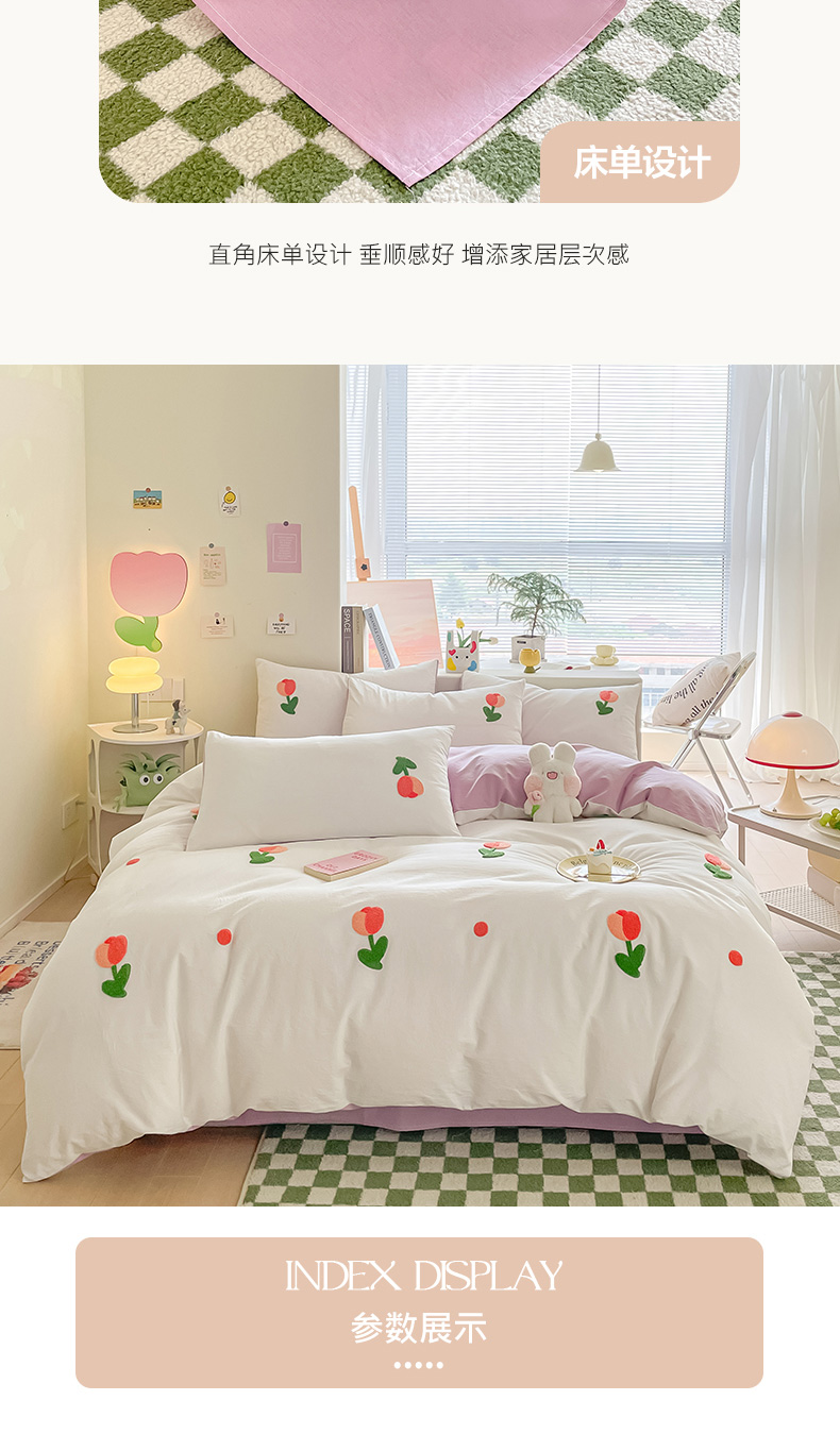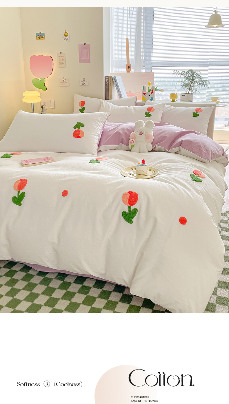 当前位置: 91家纺网 > 商品网购 > 床品套件 > 四件套 > 毛巾绣四件套 > 眠帛家居 2023新款A类水洗棉毛巾绣四件套 郁金香奶油紫