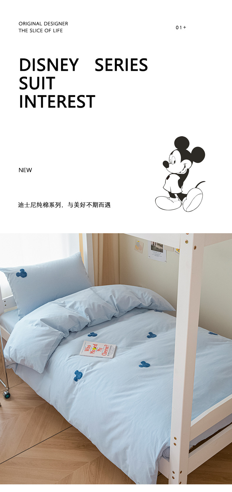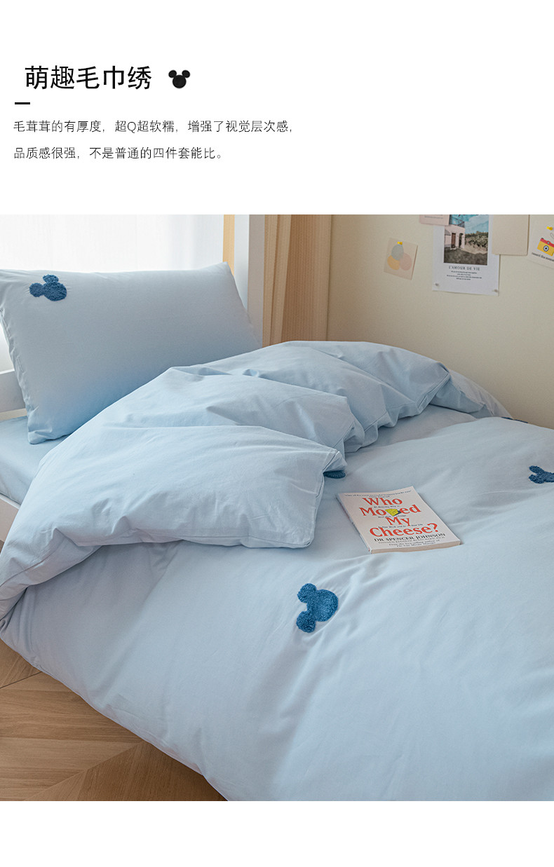 Mr.pig猪先生 2023新款迪士尼全棉水洗棉小清新四件套 米奇浅蓝