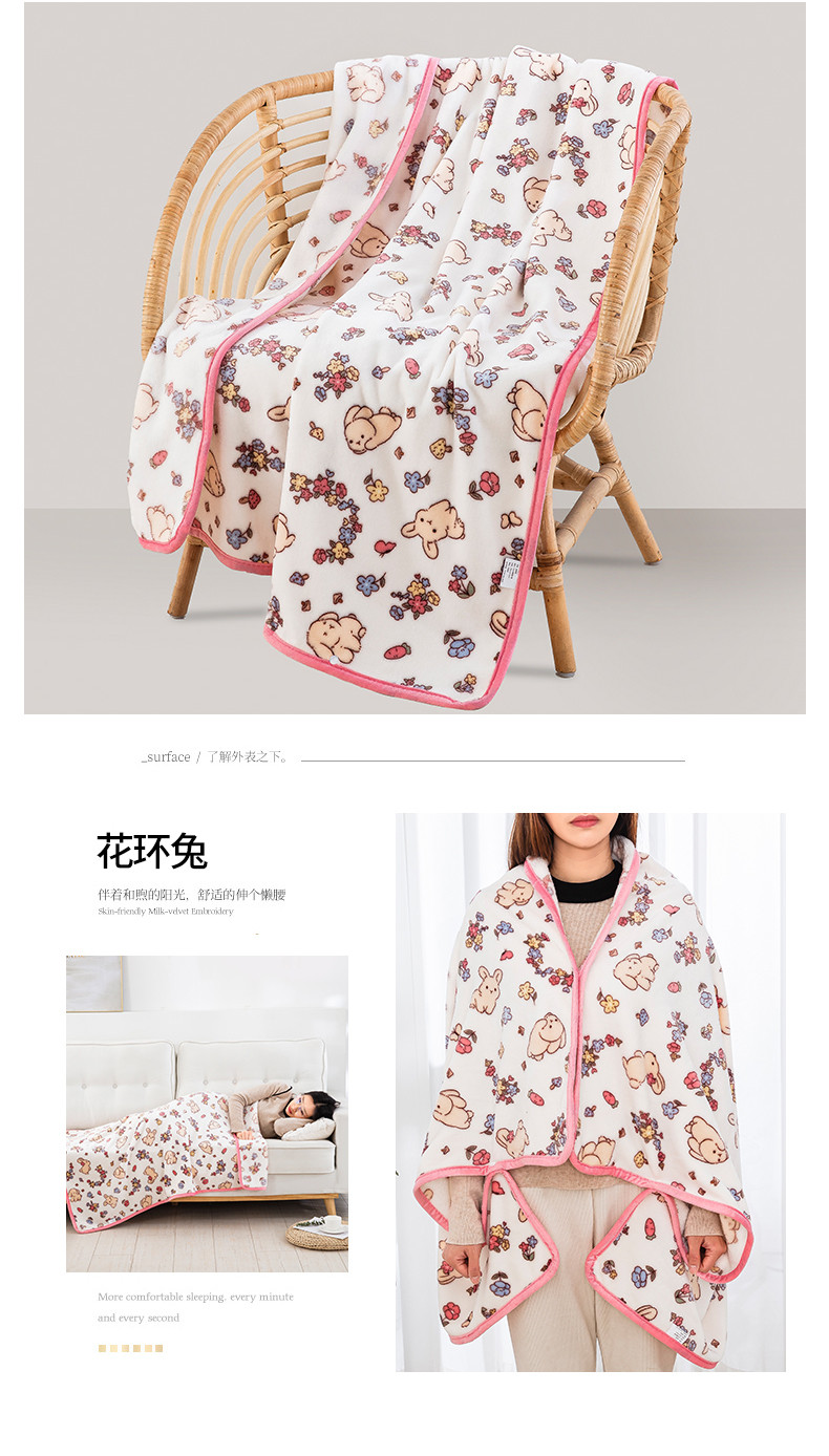 当前位置: 91家纺网 > 商品网购 > 毛毯休闲毯绒毯 > 毛毯 > 恋尚羽 2025秋冬爆款印花披肩毯盖毯 花环兔