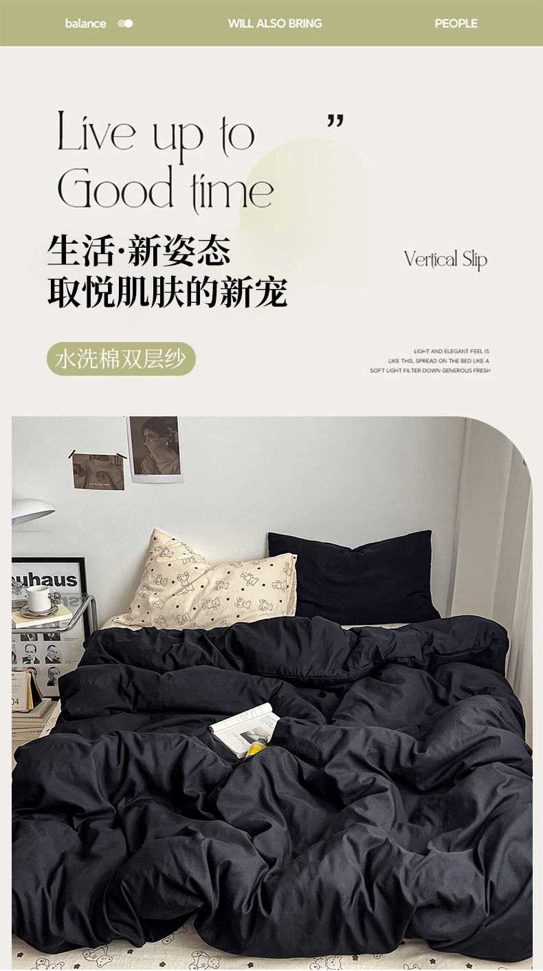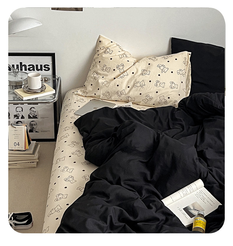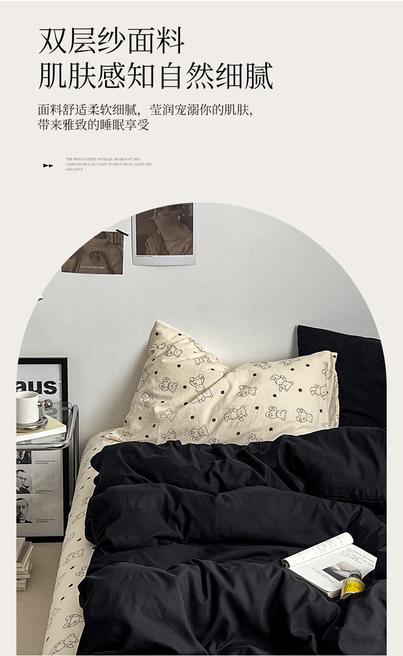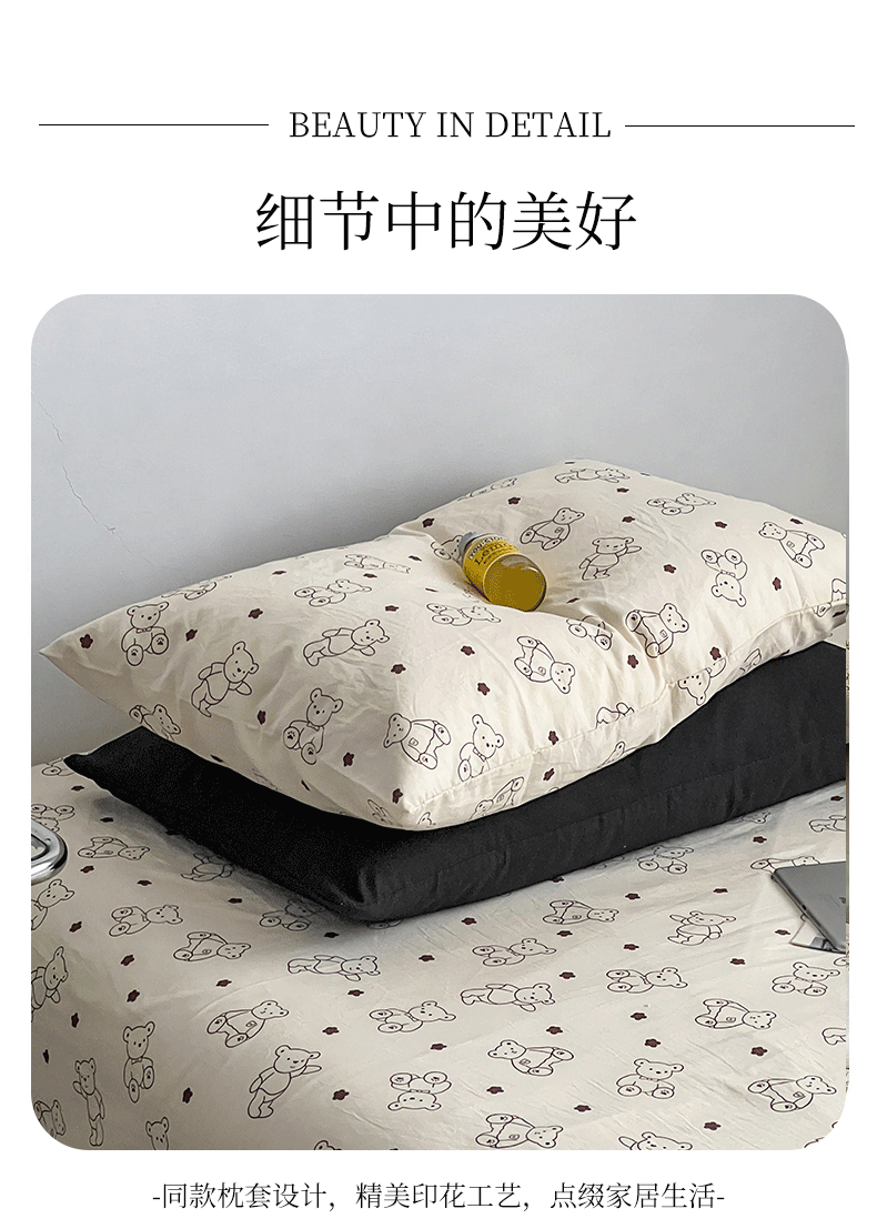 当前位置: 91家纺网 > 商品网购 > 床品套件 > 四件套 > 水洗棉四件套 > 直播热款A类水洗棉双层纱四件套纯色小碎花被套床笠三件套闪耀黑+小熊院长