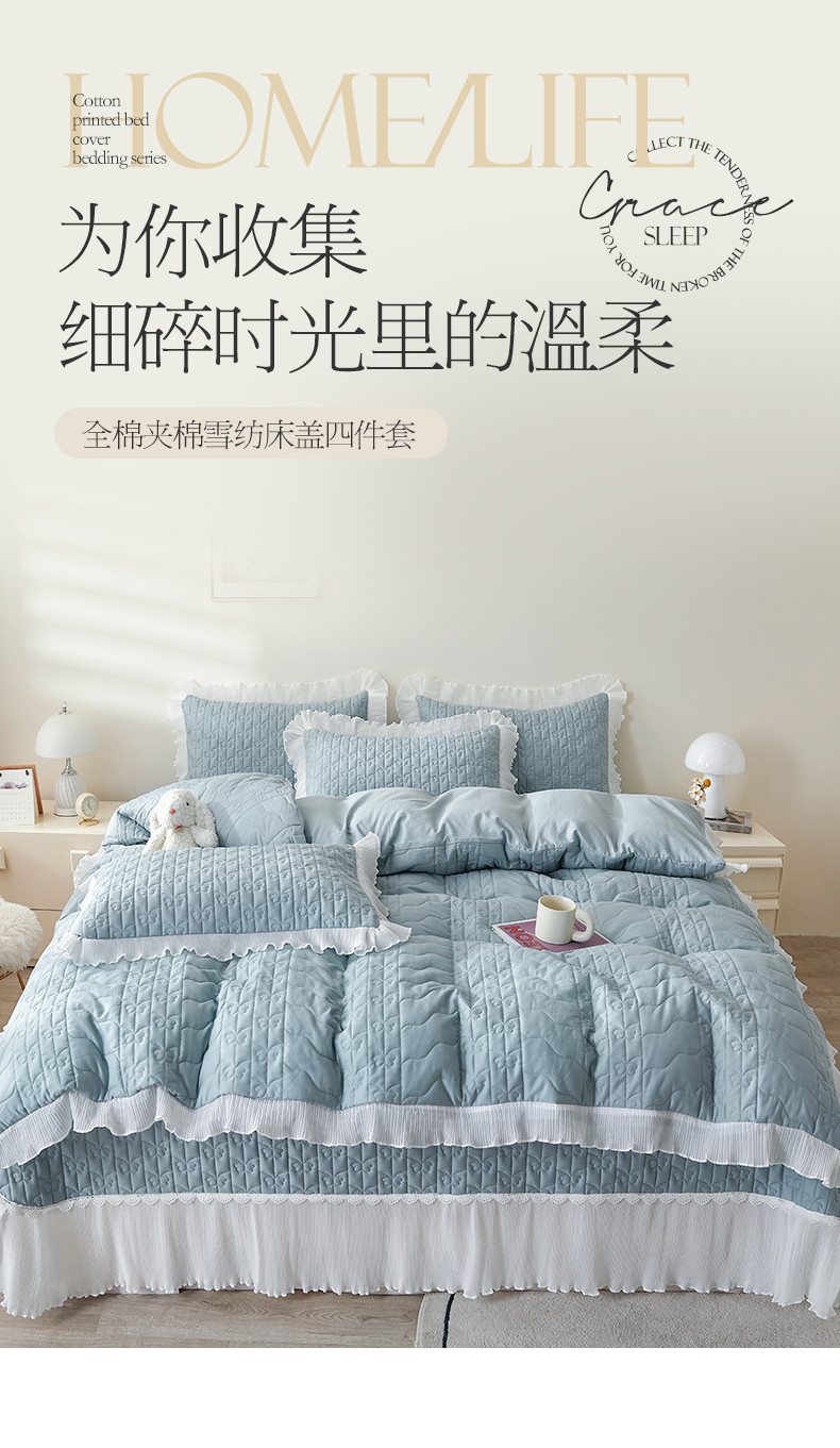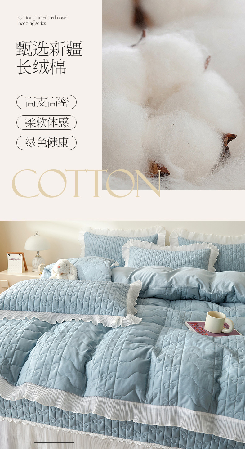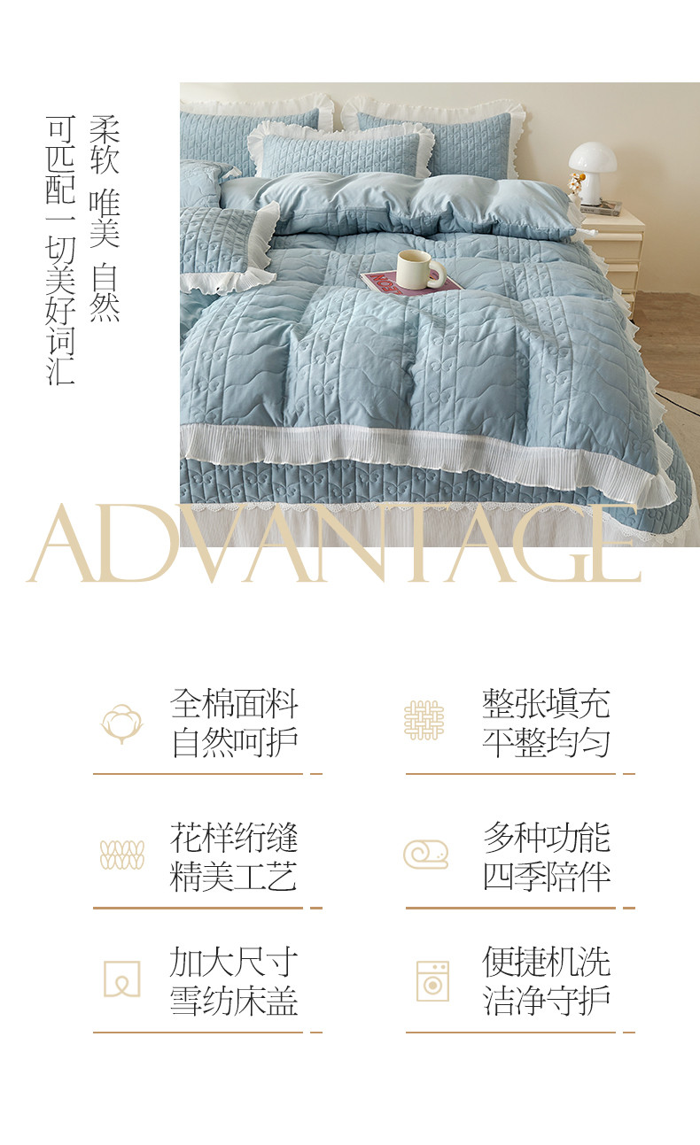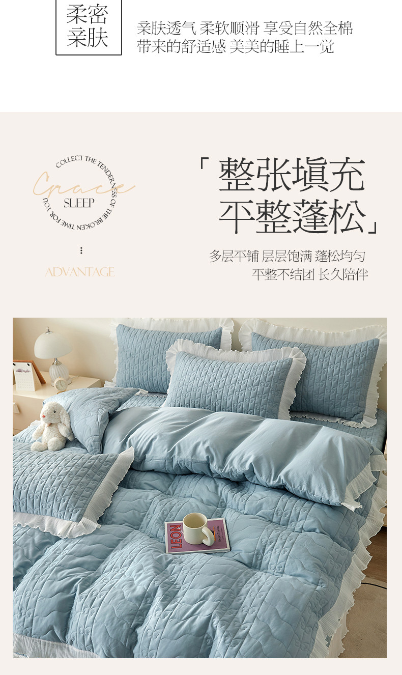 宜凡 2023新款床盖纯色系列夹棉被套四件套 莫奈蓝
