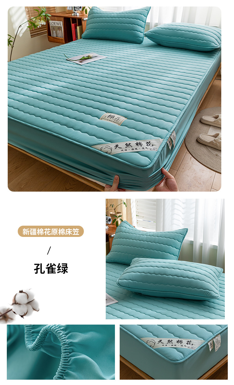 • 91家纺网 家纺一手货源 找家纺 鑫钰 2023新款亲肤棉新疆棉花原棉床笠床罩床垫保护垫 孔雀绿