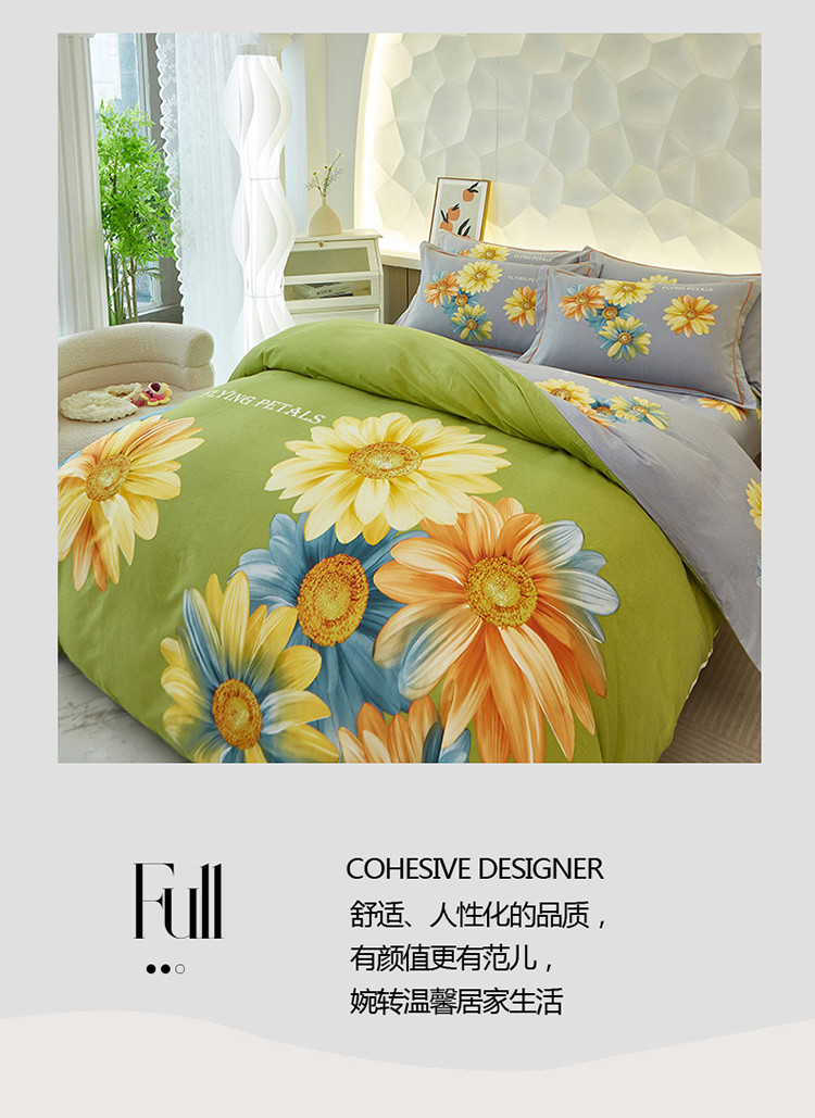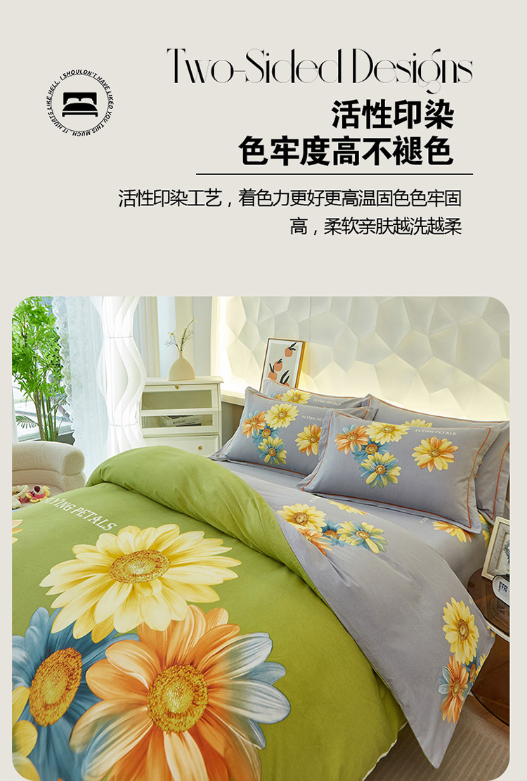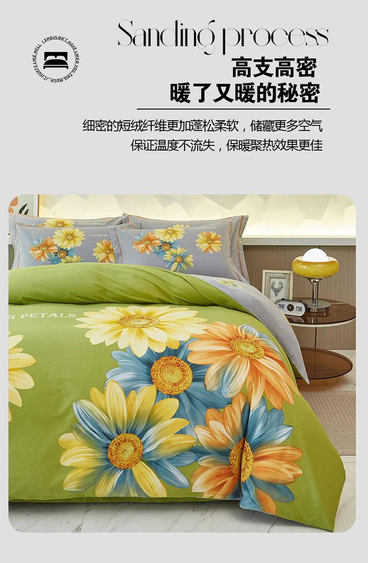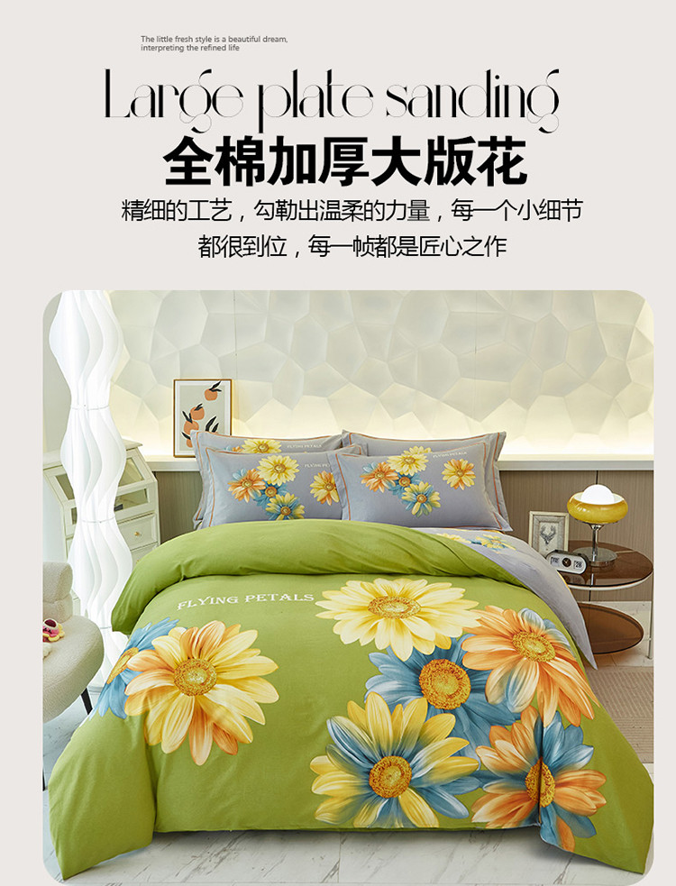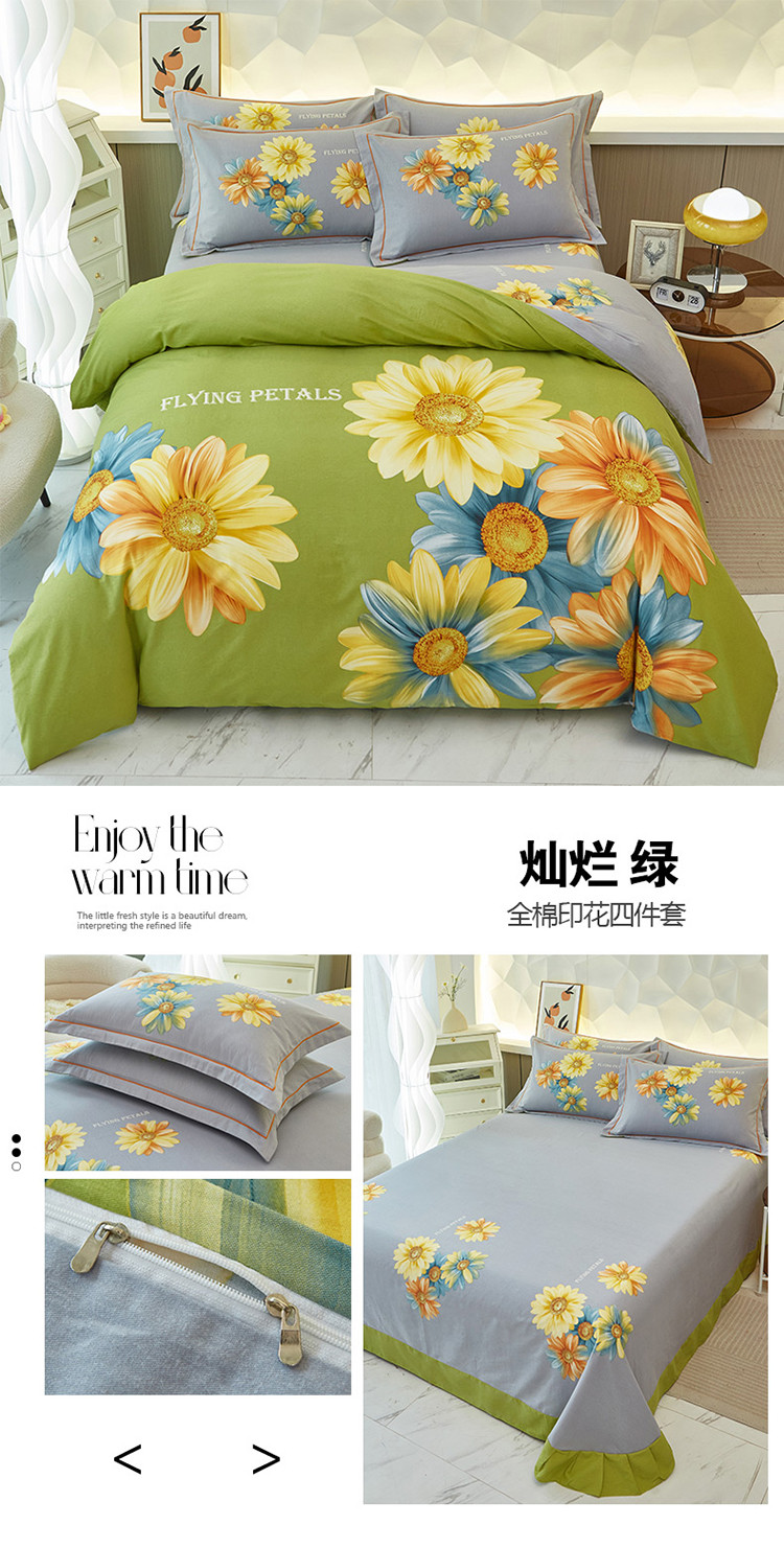雲归梦 2023年新款加厚全棉生态磨毛大版四件套 灿烂绿