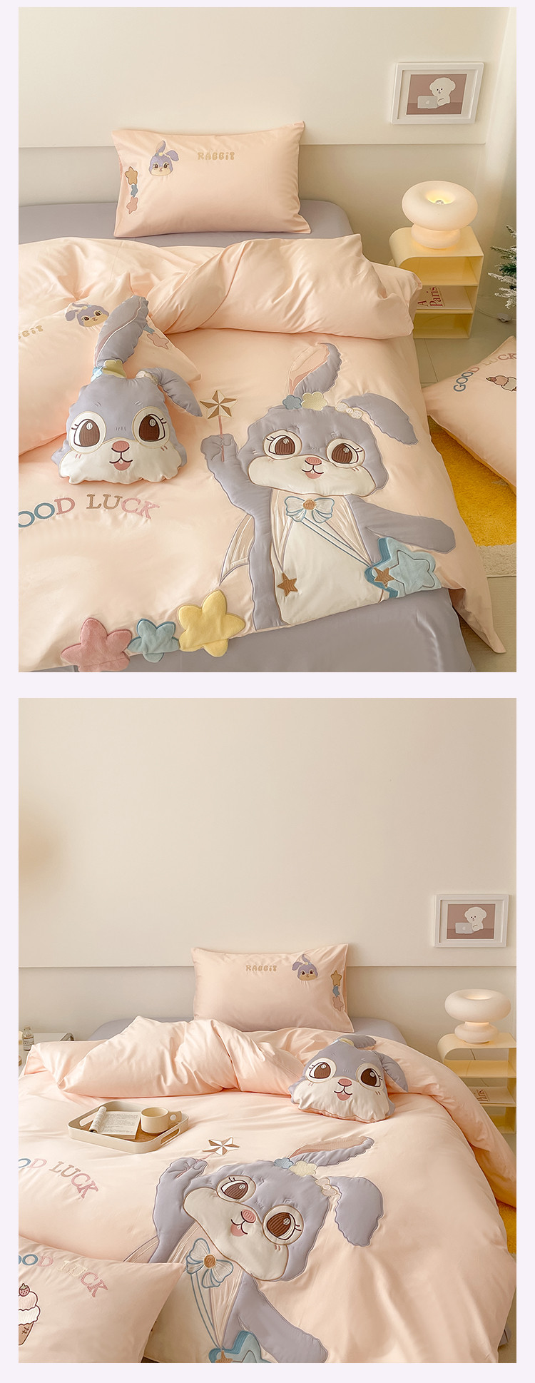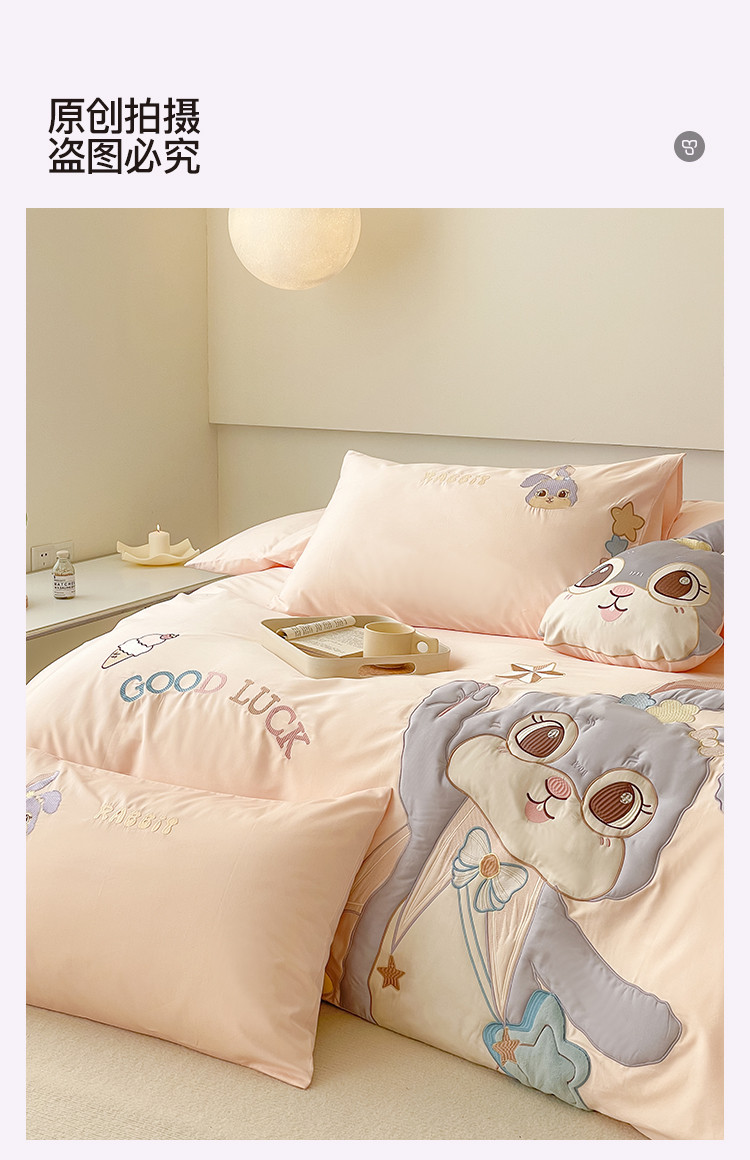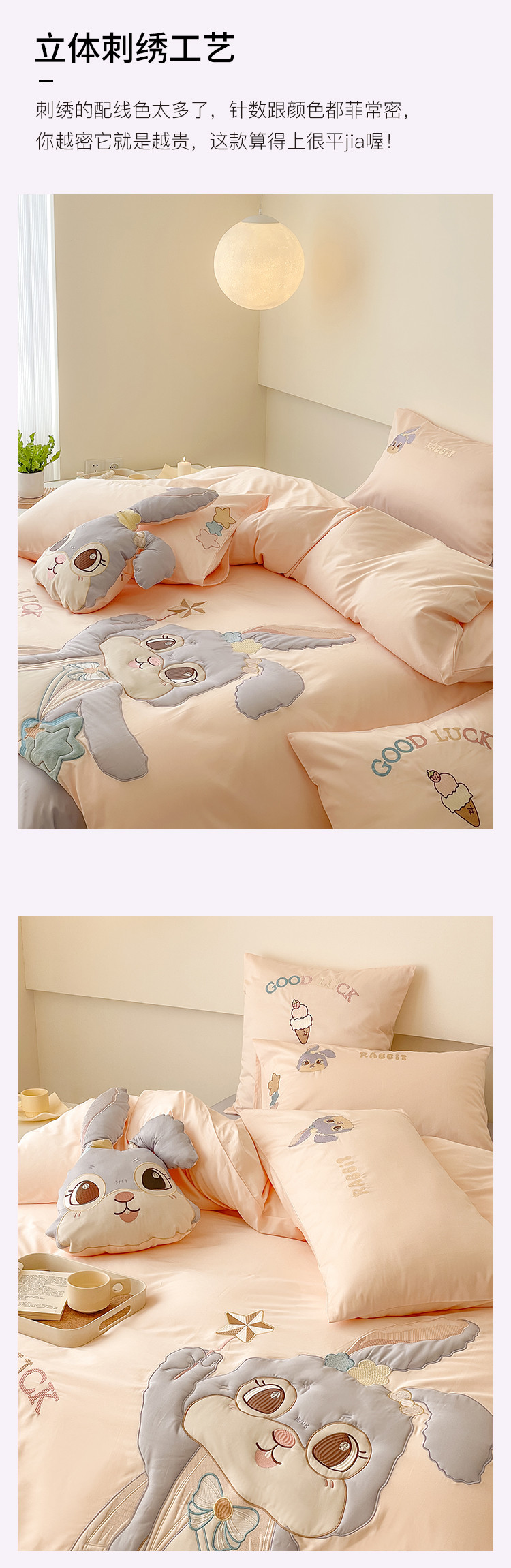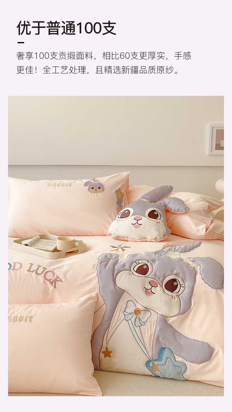 西西 2023新款100支澳棉贡缎立体刺绣卡通四件套 萌萌兔