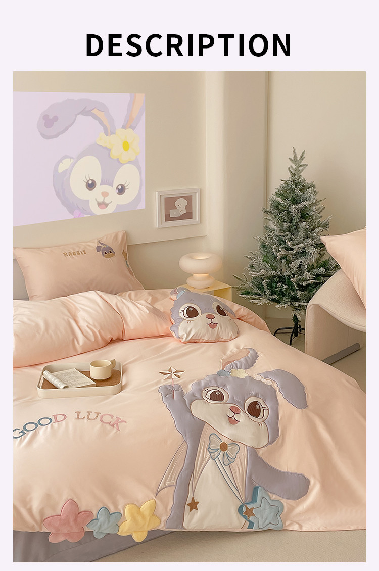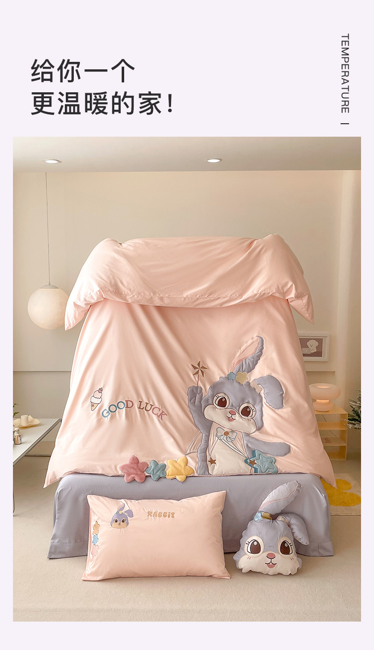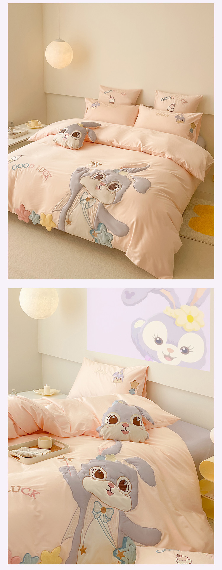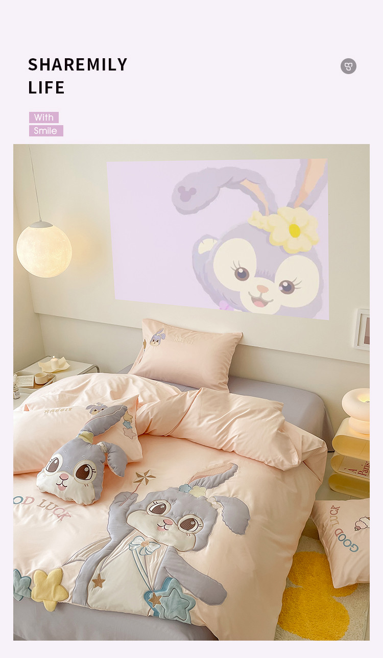西西 2023新款100支澳棉贡缎立体刺绣卡通四件套 萌萌兔