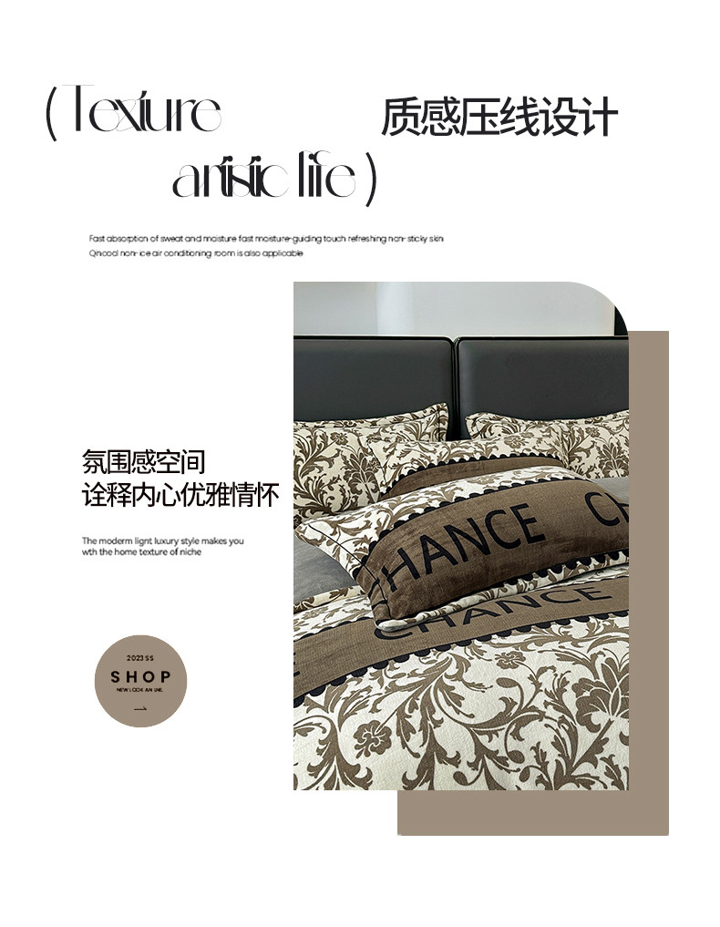耀达家居 2024新款ins毛巾绣水洗棉四件套 四叶草 咖,四叶草 咖