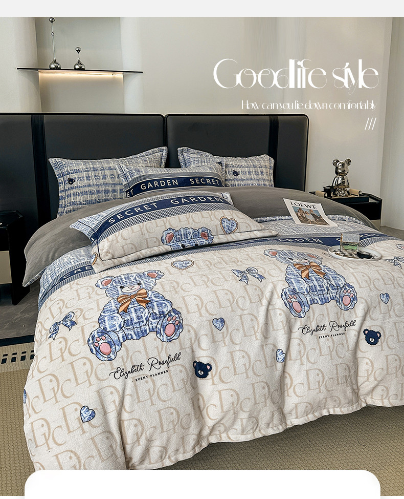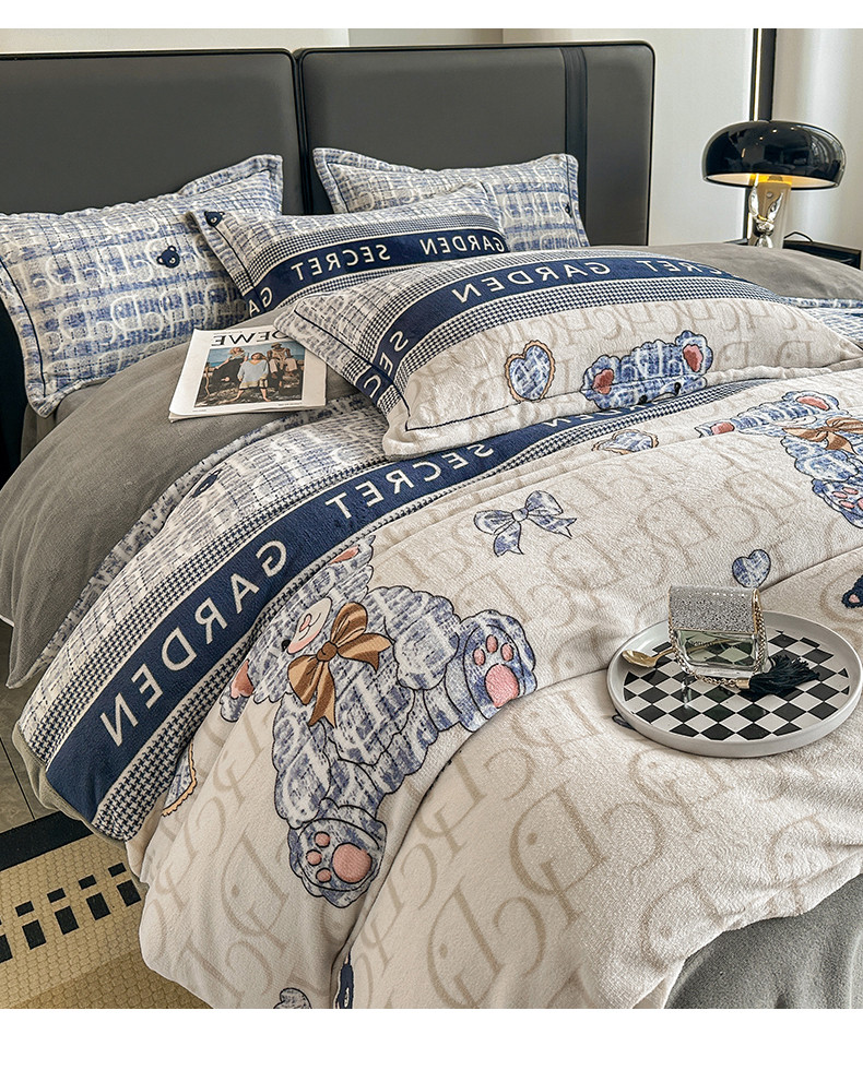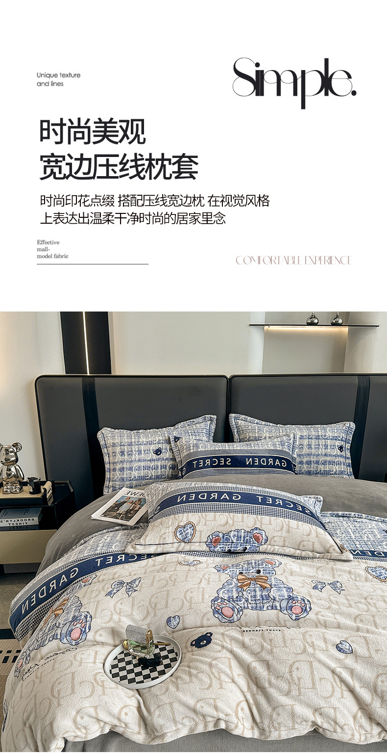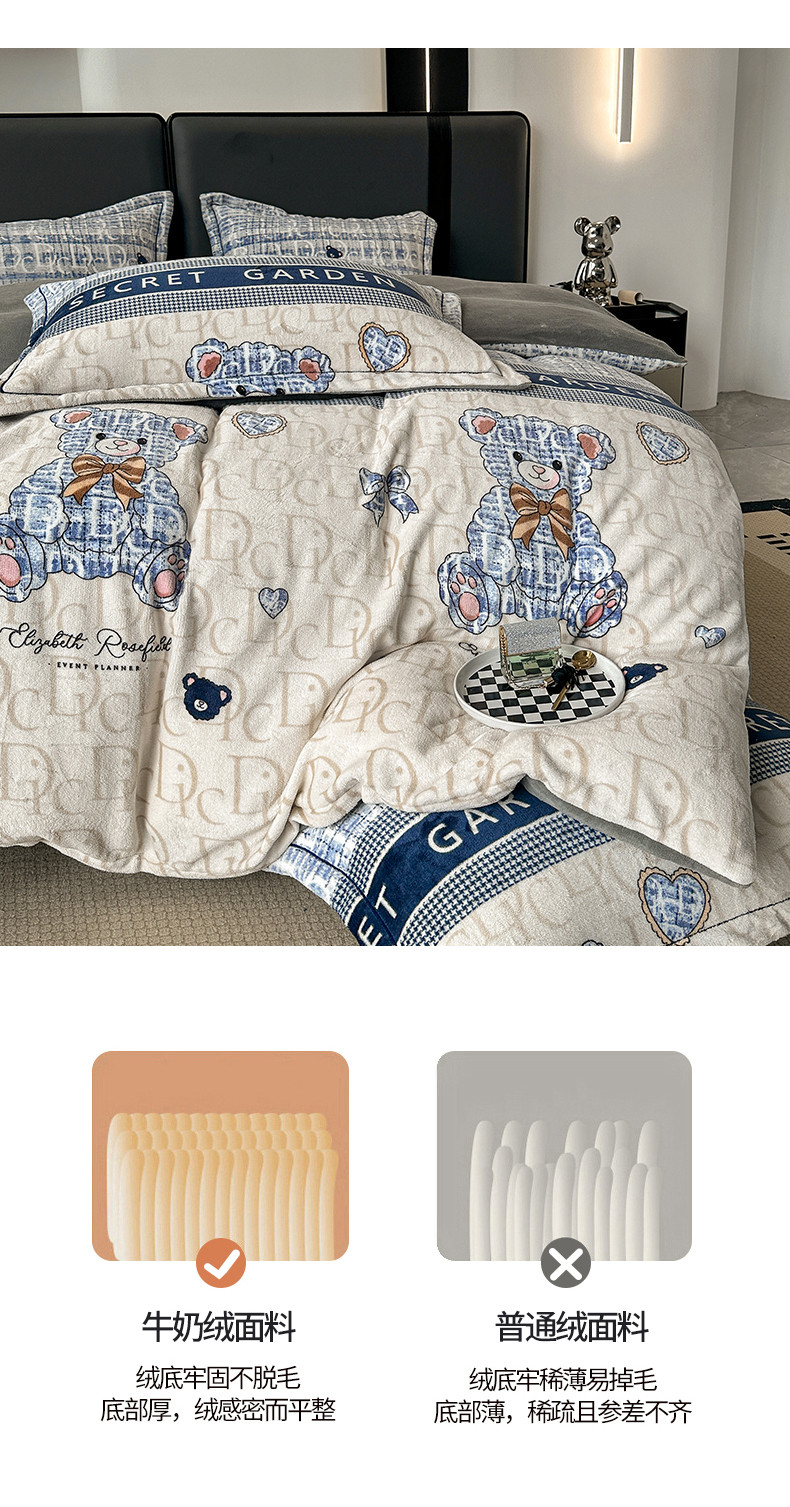 耀达 2024新款轻奢加厚牛奶绒四件套 水晶熊