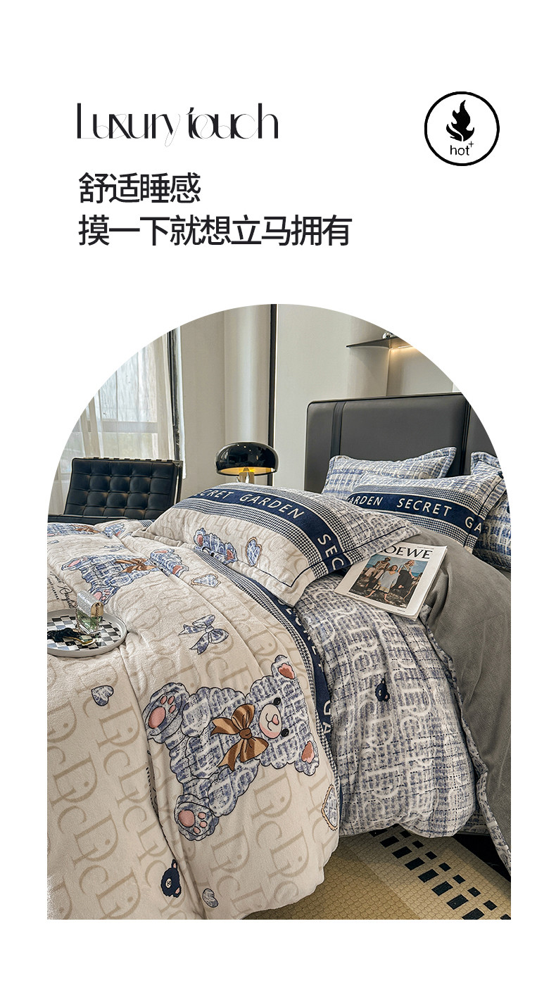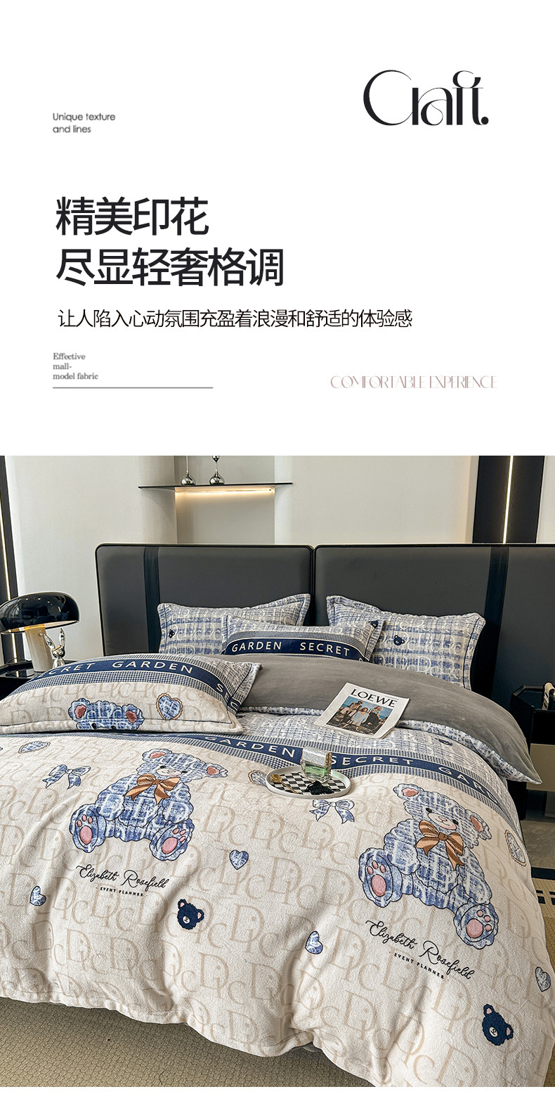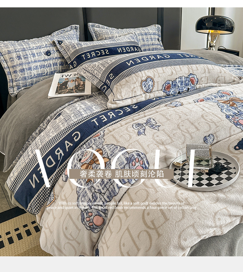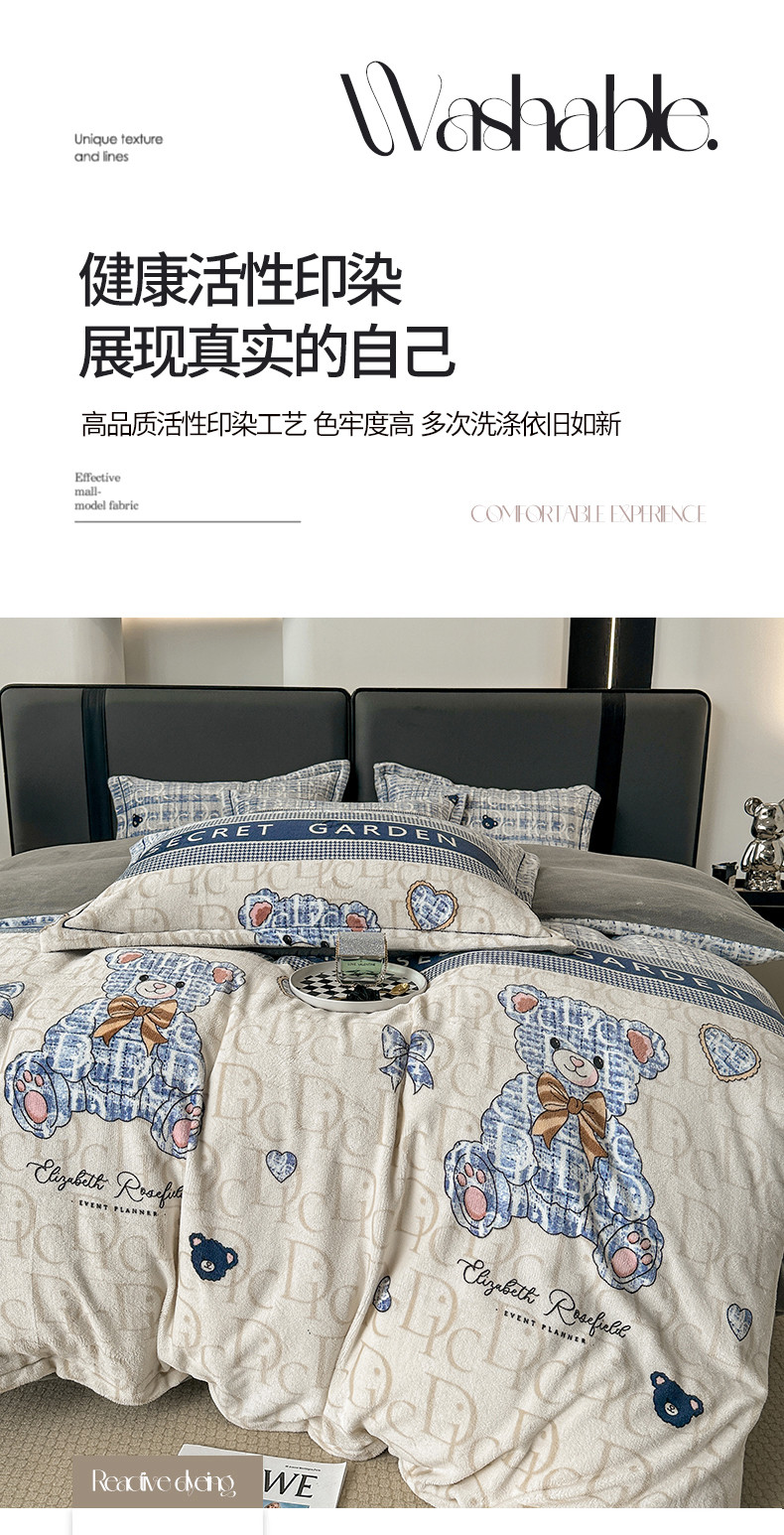商品名称:耀达 2024新款轻奢加厚牛奶绒四件套 水晶熊