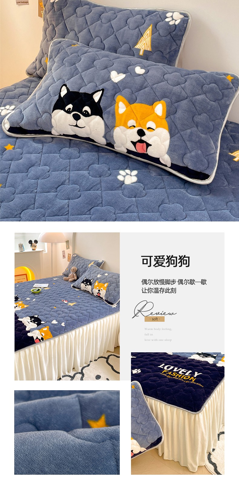 (总)梦舒羽 2025新款A类云朵棉加牛奶绒双面夹棉床盖床垫保护套床垫保护罩三件套,索菲亚,动物乐园,豹纹粉,粉红凯蒂,格子小熊,蝴蝶仙子,萝卜小姐,南瓜橙,南瓜咖,唯美,屋顶花园,线条猫,小狗笨笨,樱桃