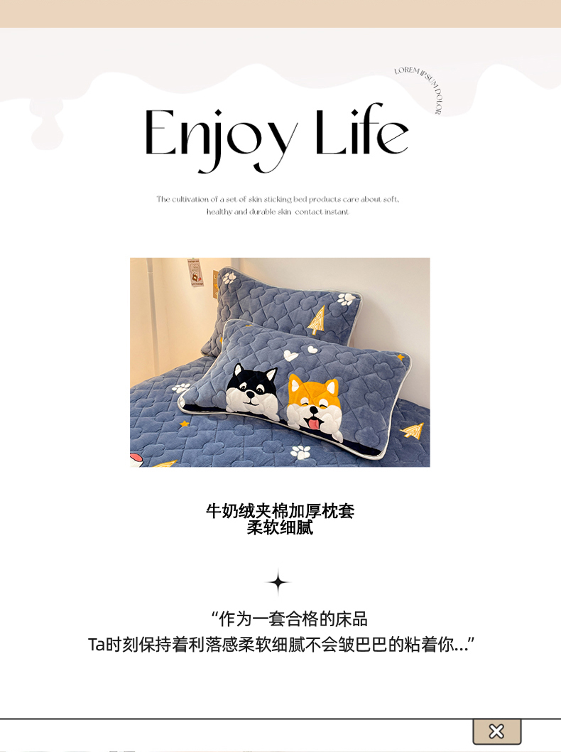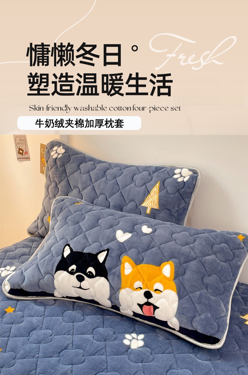 商品名称:梦舒羽 2025新款冬季牛奶绒夹棉加厚加绒亲肤柔软枕芯套 可爱狗狗