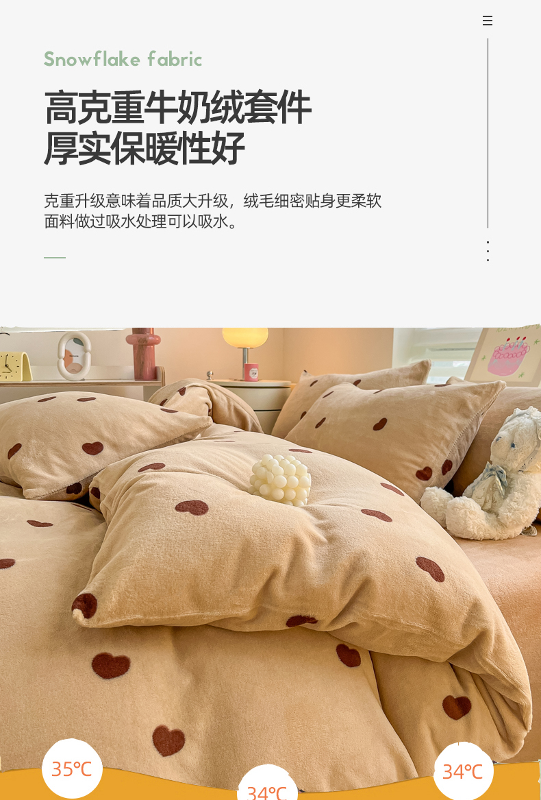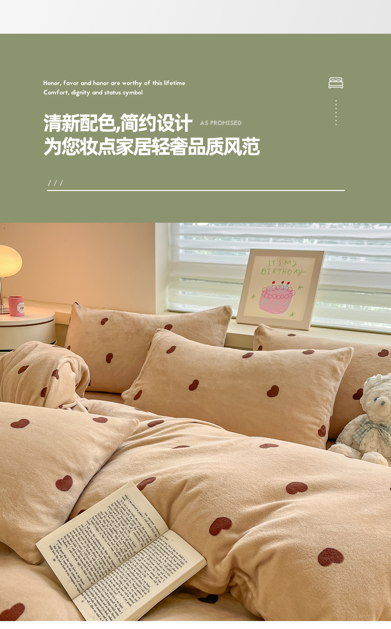 当前位置: 91家纺网 > 商品网购 > 床品套件 > 四件套 > 牛奶绒四件套 > 三朵家纺 2023新款牛奶绒混搭系列四件套 爱心卡其