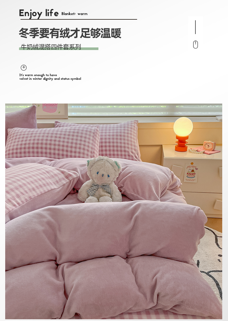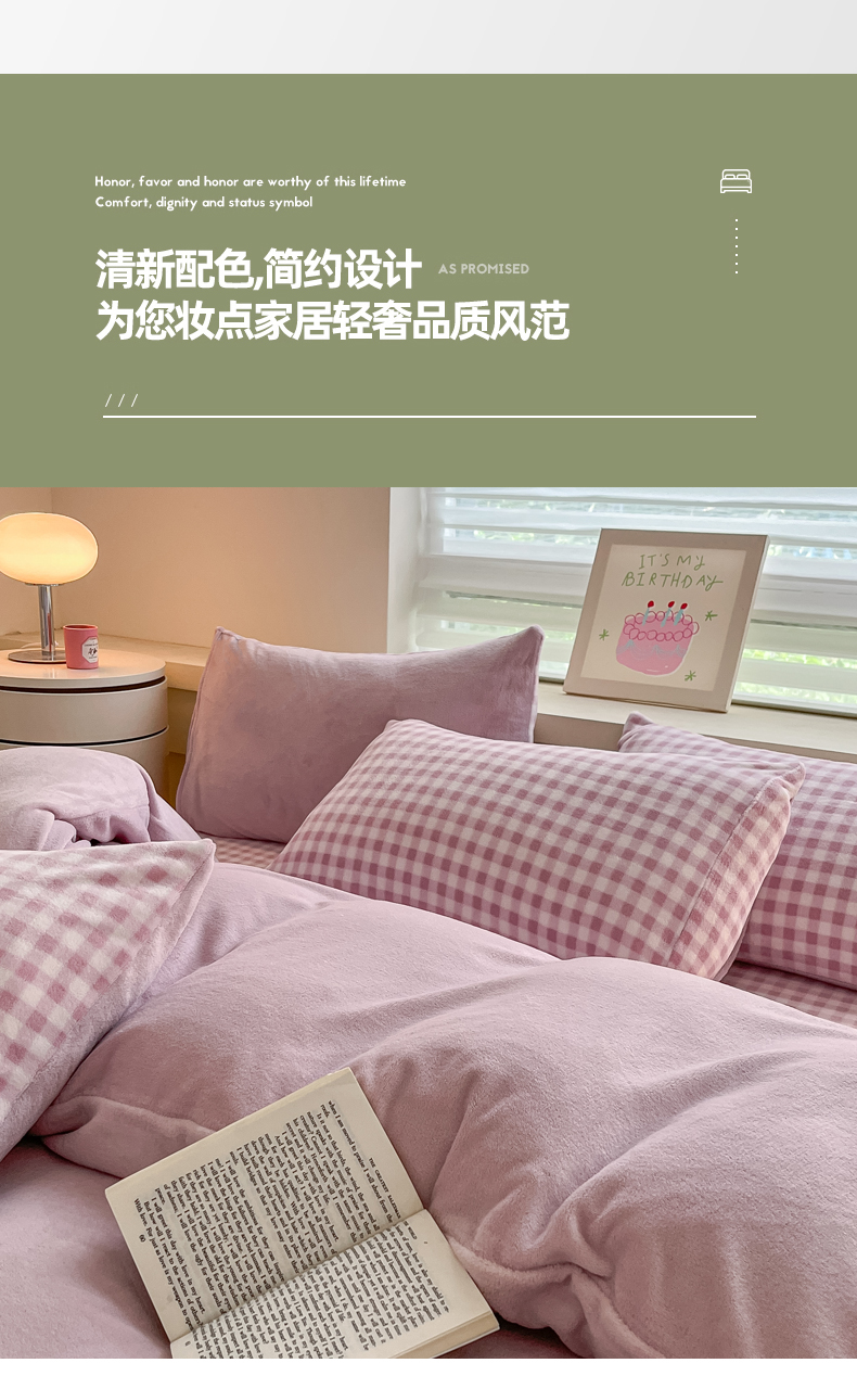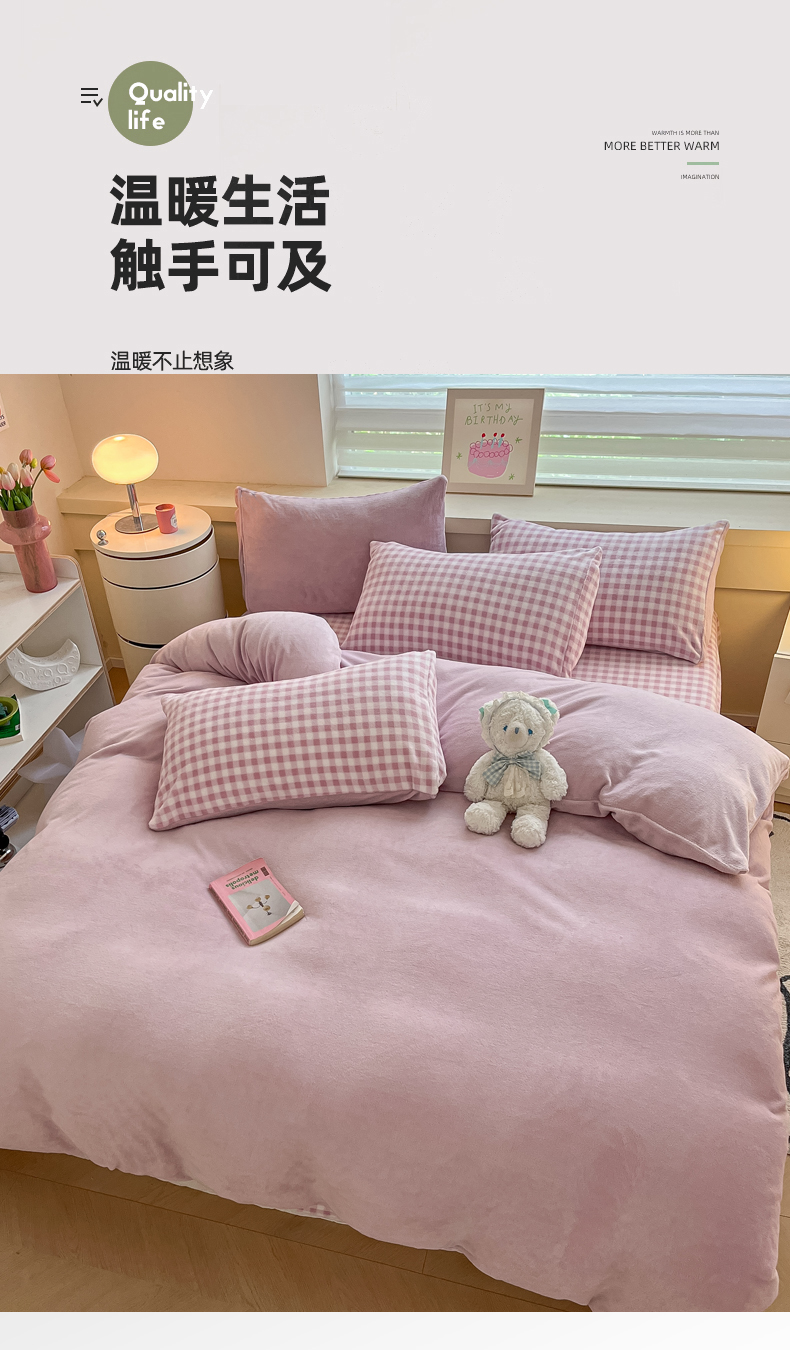 当前位置: 91家纺网 > 商品网购 > 床品套件 > 四件套 > 牛奶绒四件套 > 三朵家纺 2023新款牛奶绒混搭系列四件套 浅紫+方格