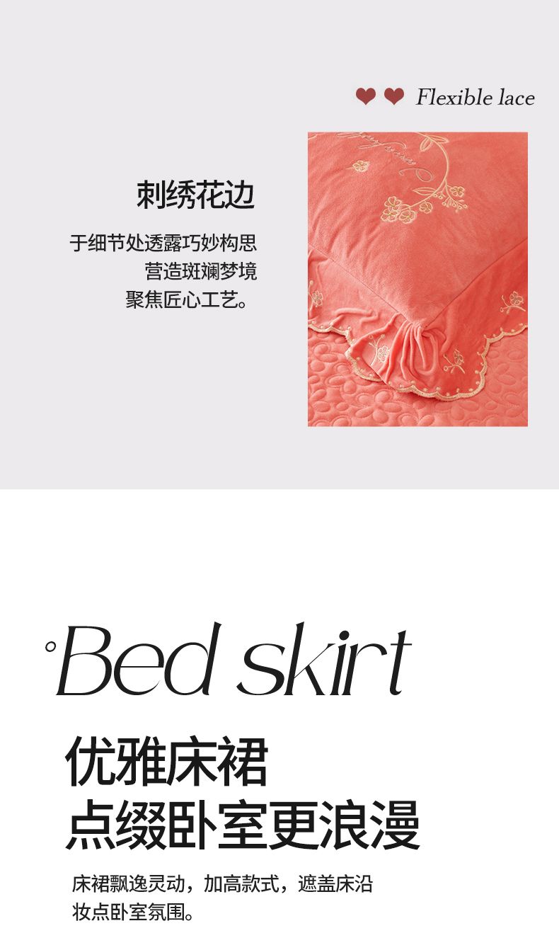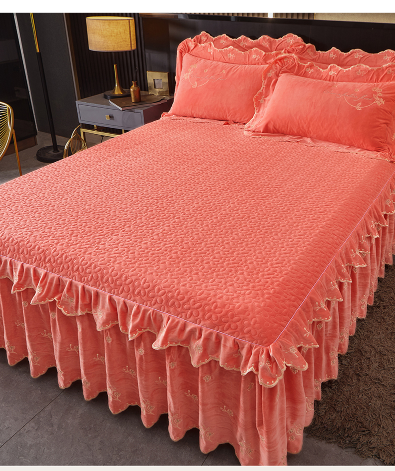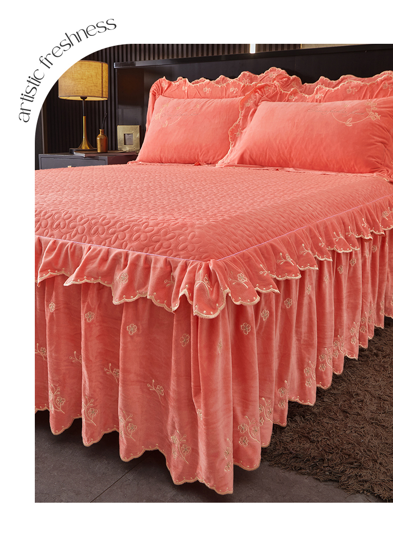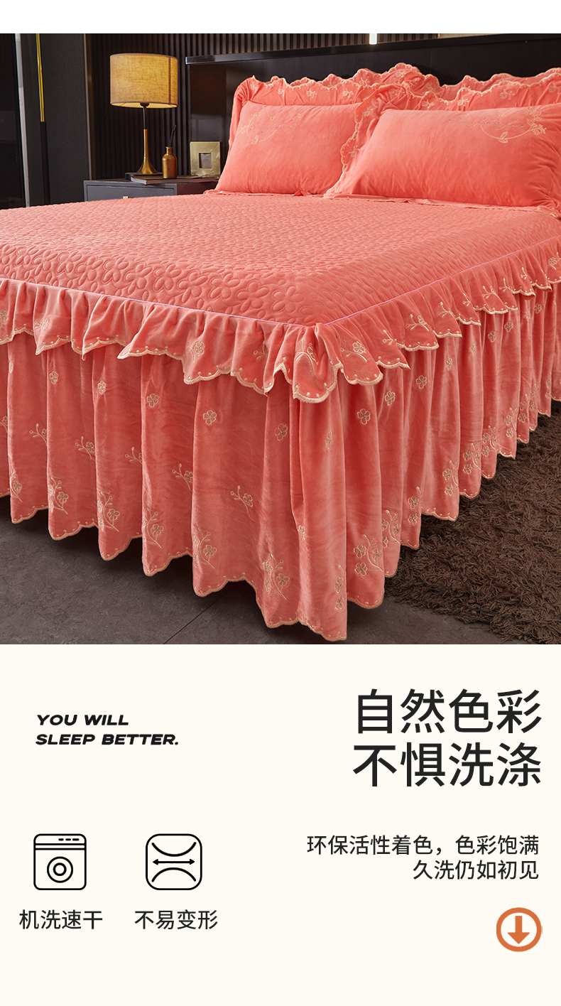 (总)恒爱 2022秋冬水晶绒翩翩花舞夹棉床裙四件套,大红色,豆沙红,橄榄绿,公主粉,桔色,咖啡色,孔雀绿,拉菲红,罗兰紫,玫红色,美人玉,米白色,米驼色,抹茶绿,浅灰色,紫色