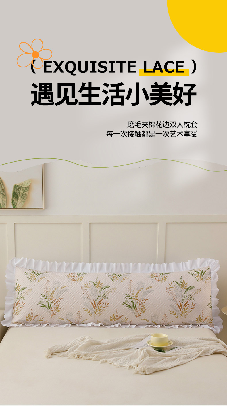 艾兜坊 2023新款磨毛夹棉花边双人枕套 仙草