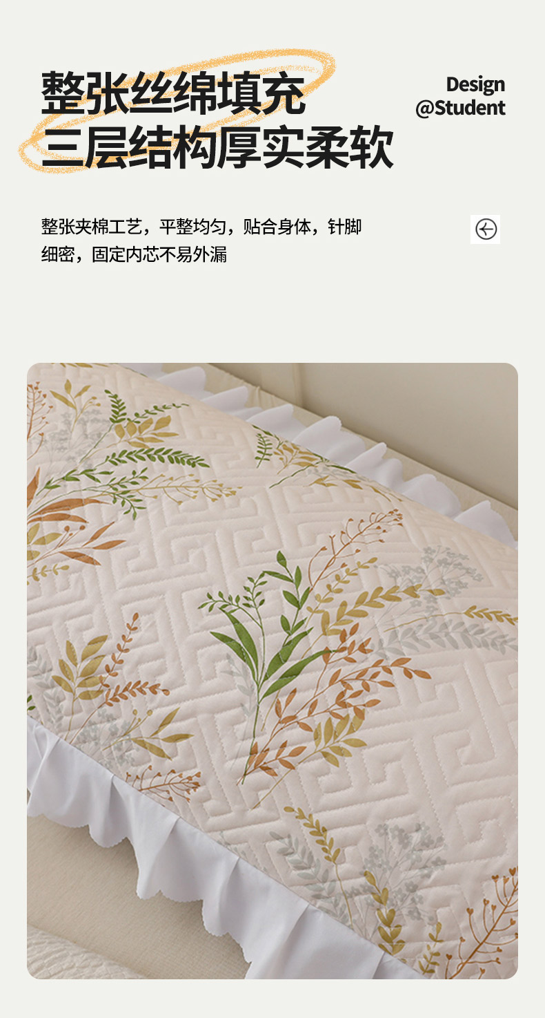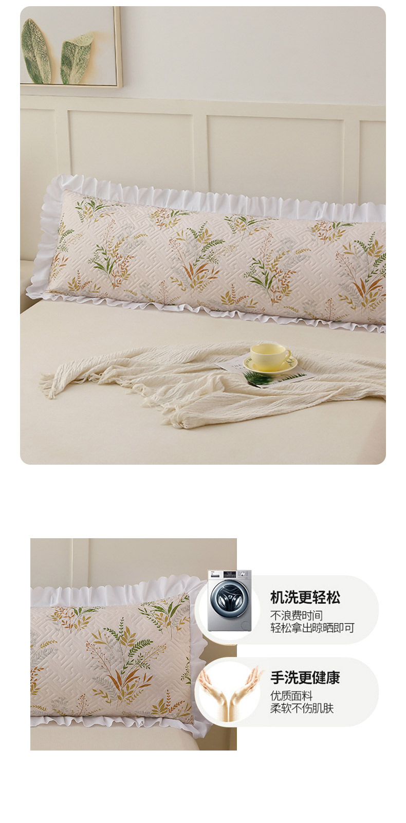 商品名称:艾兜坊 2023新款磨毛夹棉花边双人枕套 仙草
