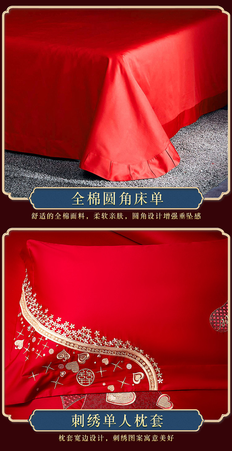 高大尚婚庆馆 2025新款长绒棉囍嫁系列婚庆四件套 格调,格调