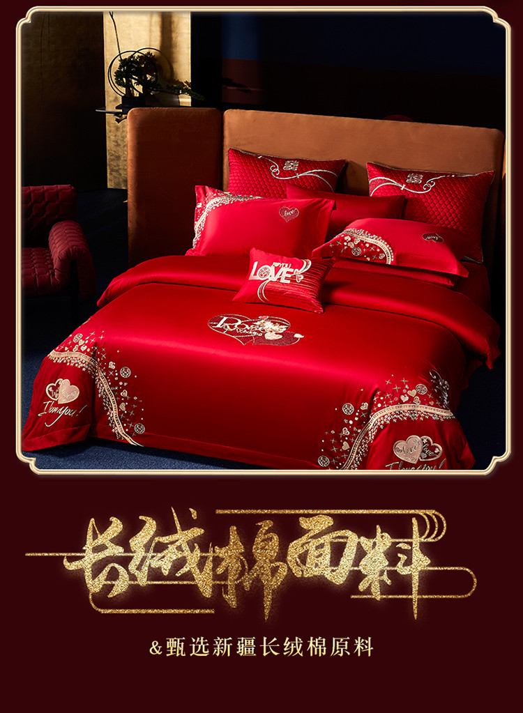 (总)高大尚 2023秋冬新品长绒棉婚庆四件套多件套 天作之合,天作之合