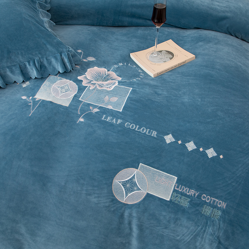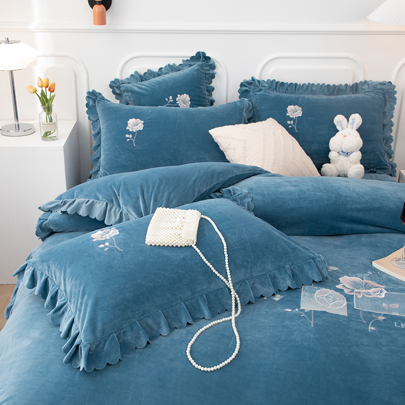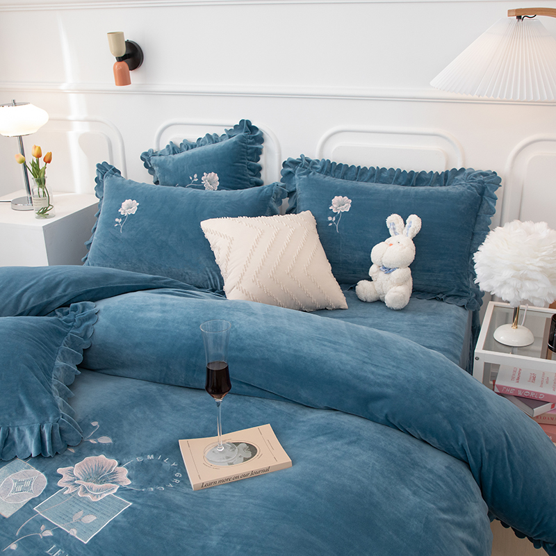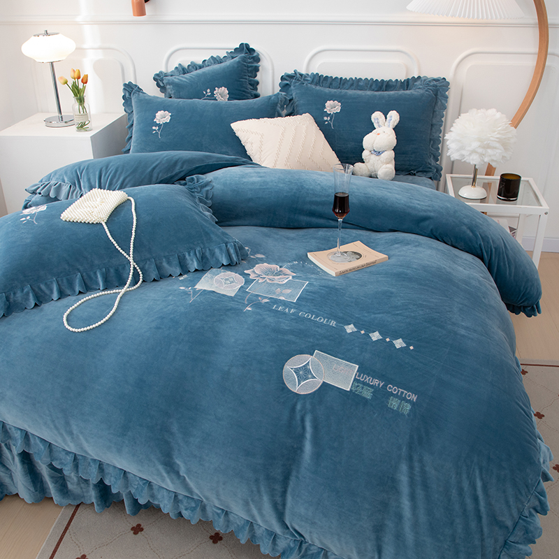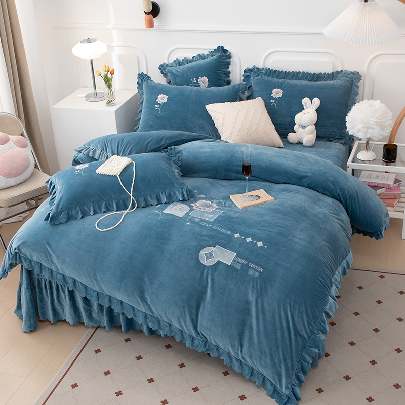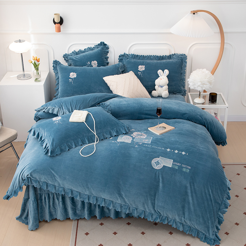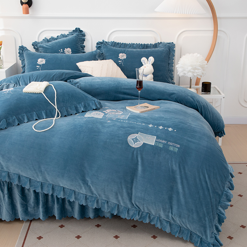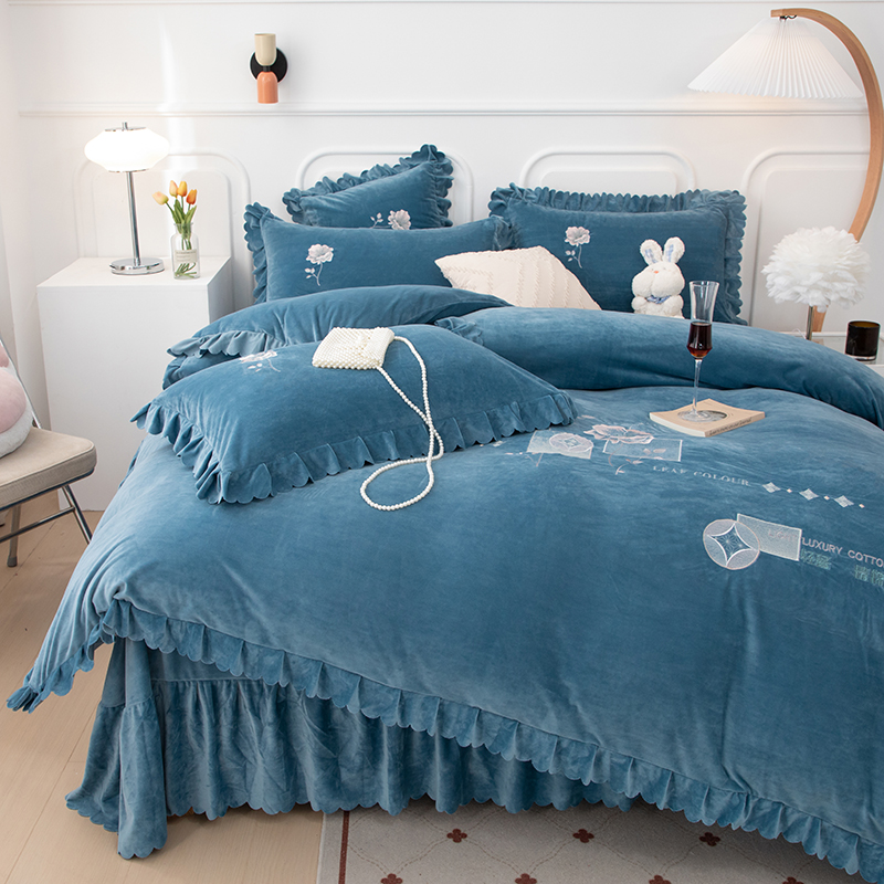 商品名称:优姿家纺 2024新品8.5斤德芙绒韩版床裙绣花保暖四件套 绽放宝石兰