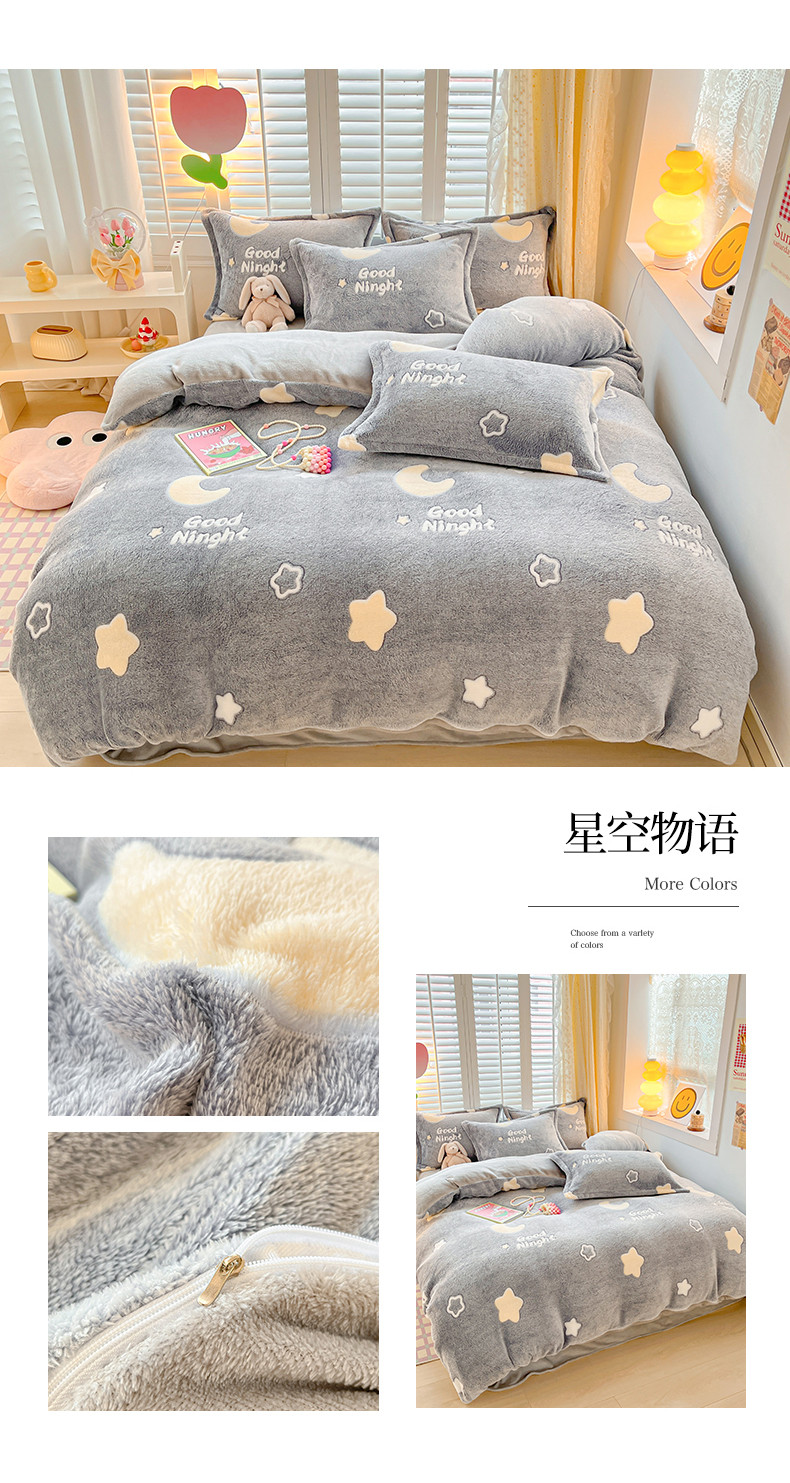 当前位置: 91家纺网 > 商品网购 > 床品套件 > 四件套 > 磨绒四件套 > 川悦生活 2023新款立体雪花绒四件套 星空物语