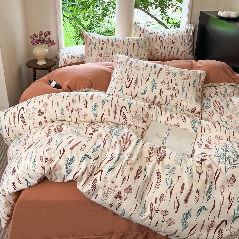 2023新款直播爆款超柔提花小竺棉法式复古亲肤水洗四件套森林物语
