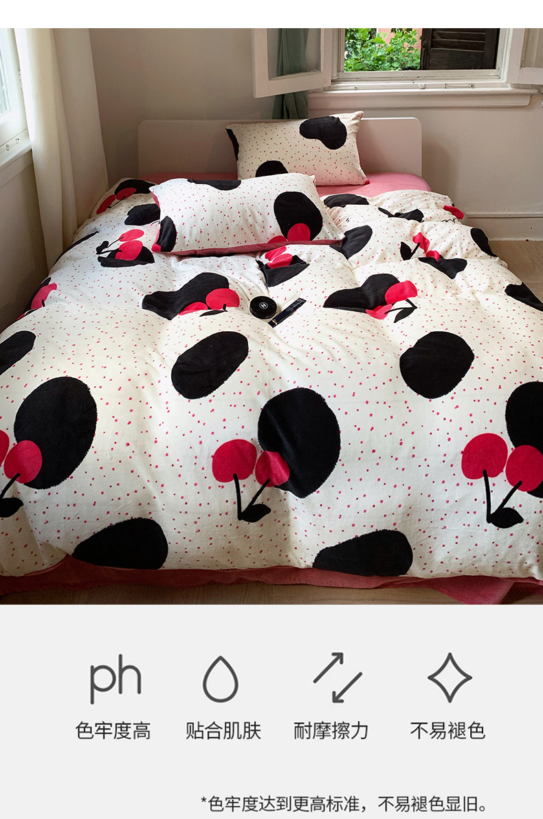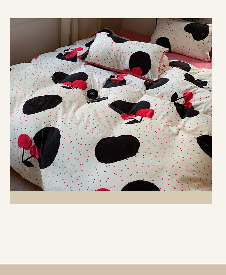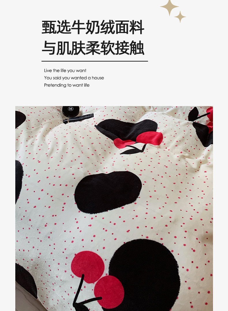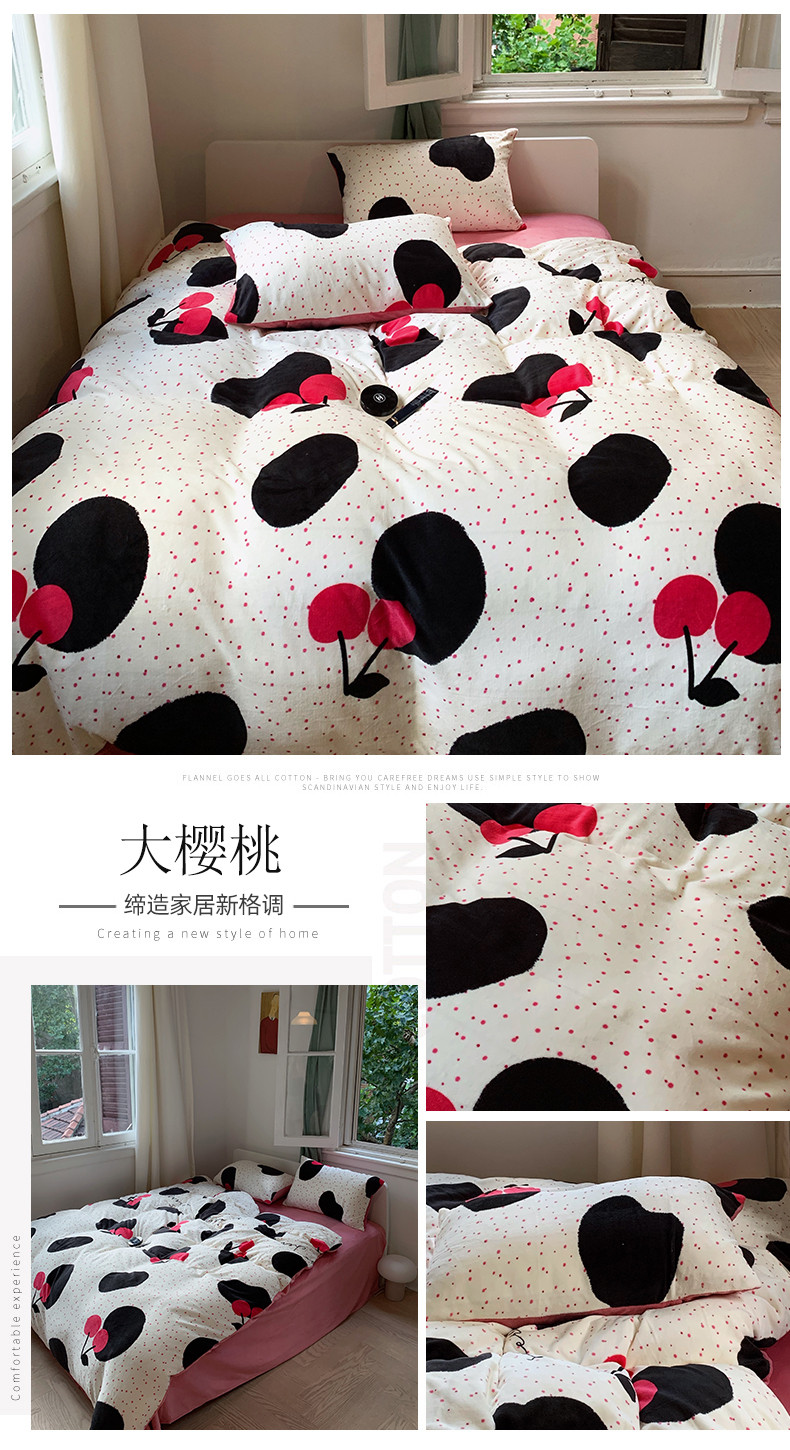 商品名称:花沐 2023新款冬季复古小法式牛奶绒四件套 大樱桃