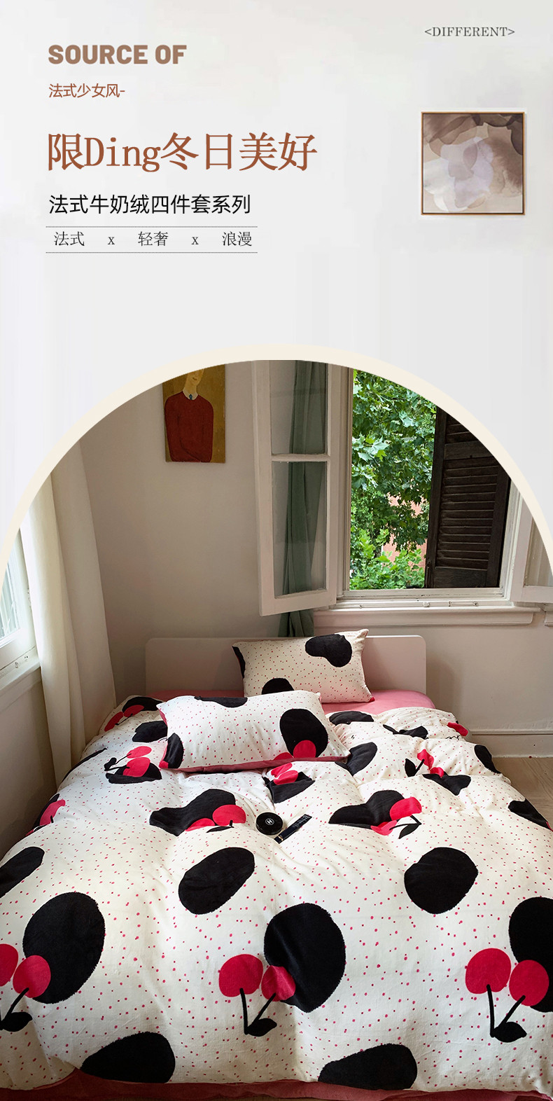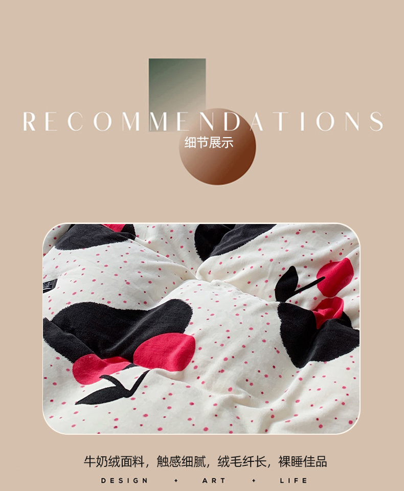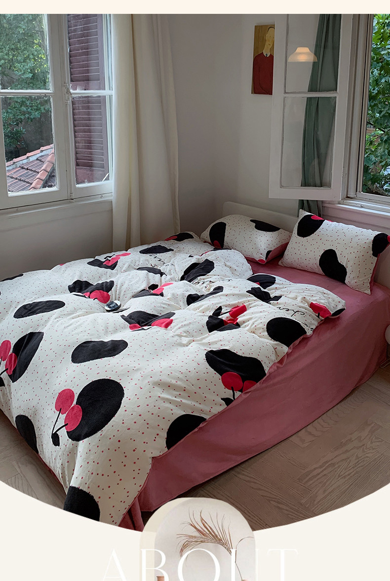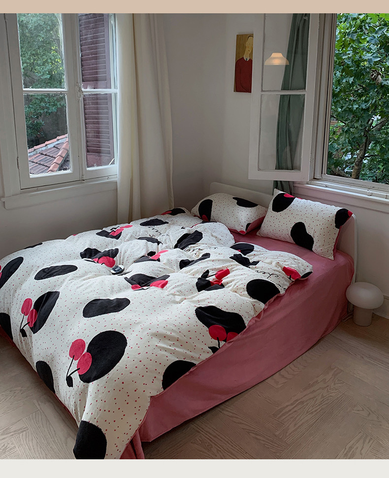 商品名称:花沐 2023新款冬季复古小法式牛奶绒四件套 大樱桃