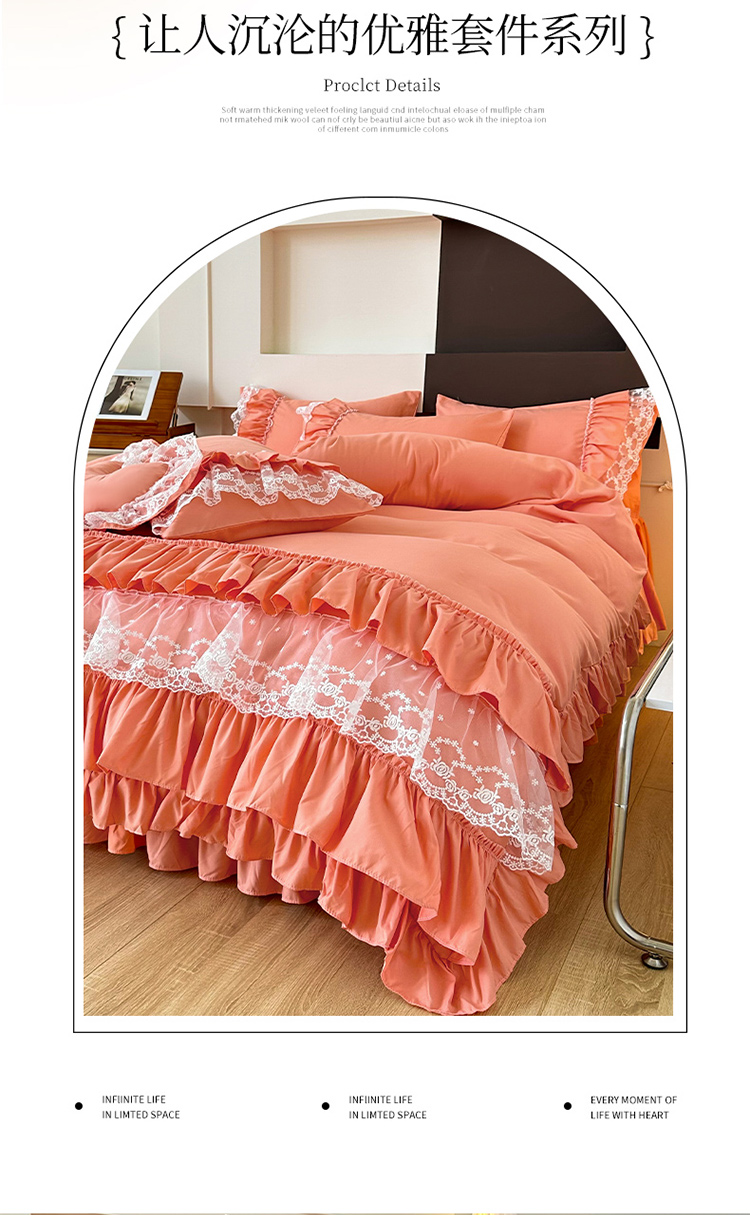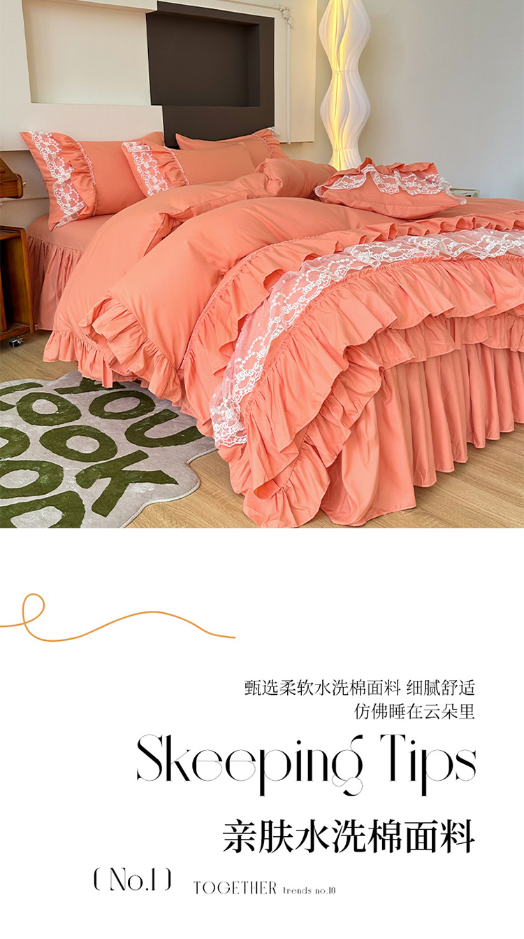 当前位置: 91家纺网 > 商品网购 > 床品套件 > 四件套 > 磨毛活性四件套 > 言熙居 2023新款多巴胺加厚磨毛韩版床裙小清新风四件套 多巴胺-桔